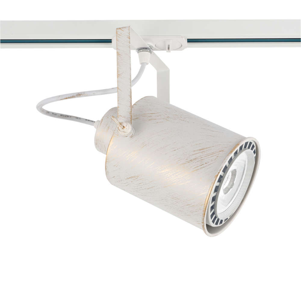 Осветително тяло за релсово осветление TS13PAR3CWG ACA, 220V, фасунга Е27, PAR30, бяло тяло със златни мотиви, подвижен корпус с насочване