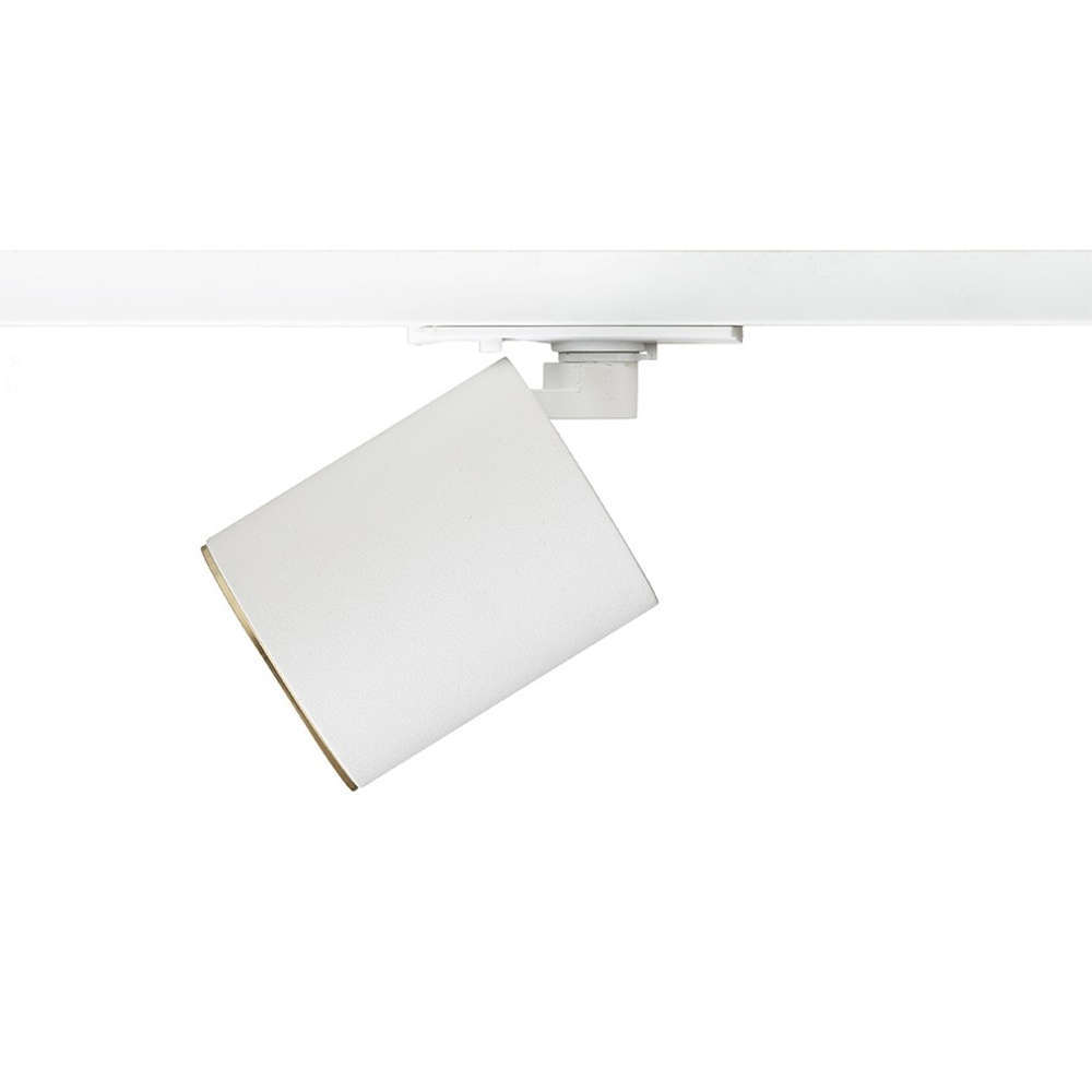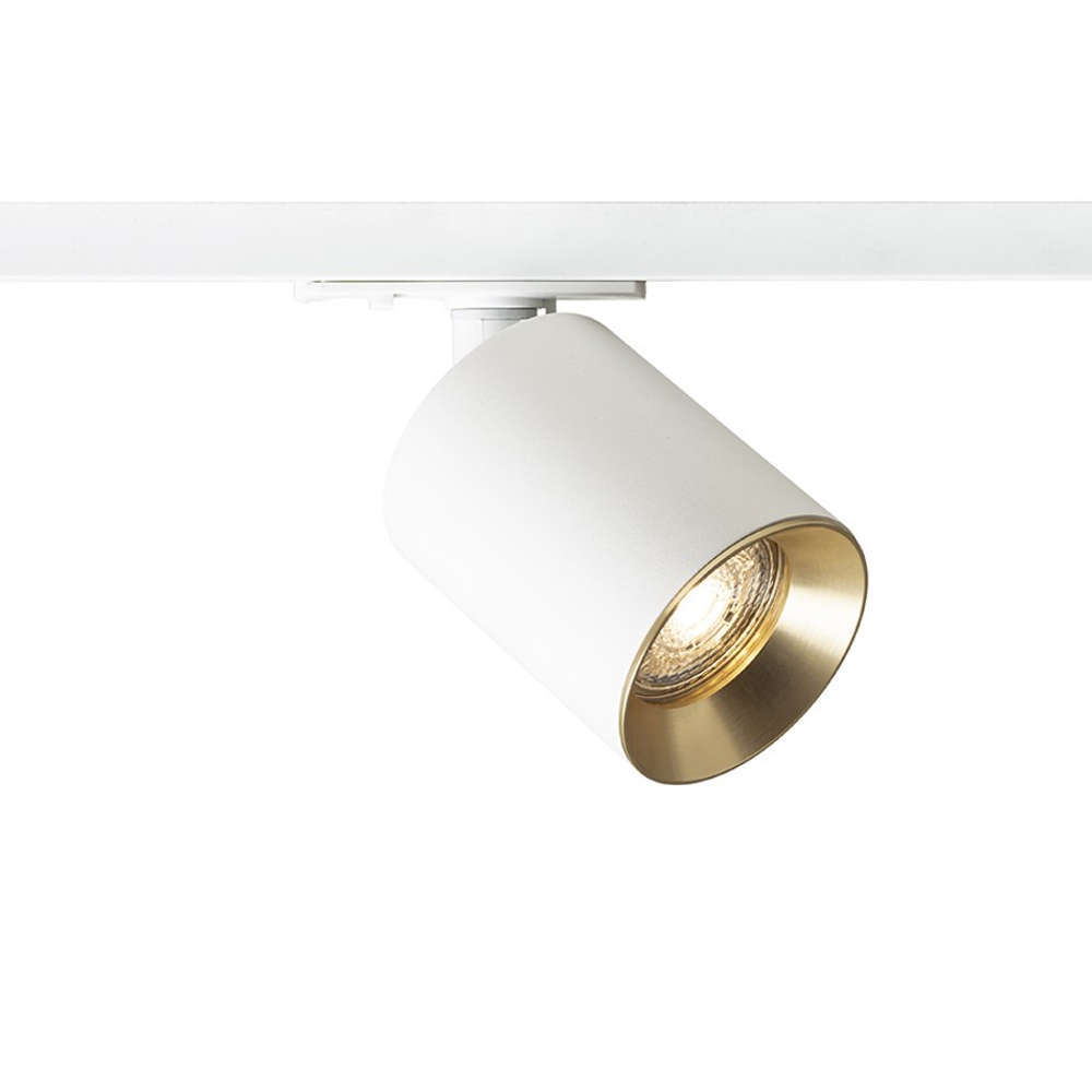 Осветително тяло за релсов монтаж с фасунга GU10, алуминиев корпус, цвят бял мат и полиран месинг