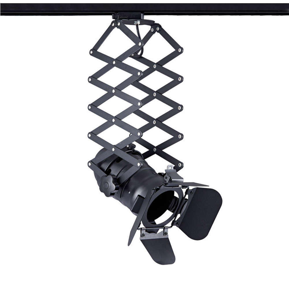 Релсов прожектор за трифазна шина Aca Lighting 243TLB4W - интериорни прожектори с регулиране на височината предназначен за инсталация на релса с четири линии (трифазна шина 220V). Елегантен релсов прожектор изключително подходящ за акцентно осветяване в галерии, музеи, заведения, магазини, вътрешни пространства в индустриален стил. Лифт интериорен прожектор предназначен за светлоизточник LED крушка Е27 тип PAR30.