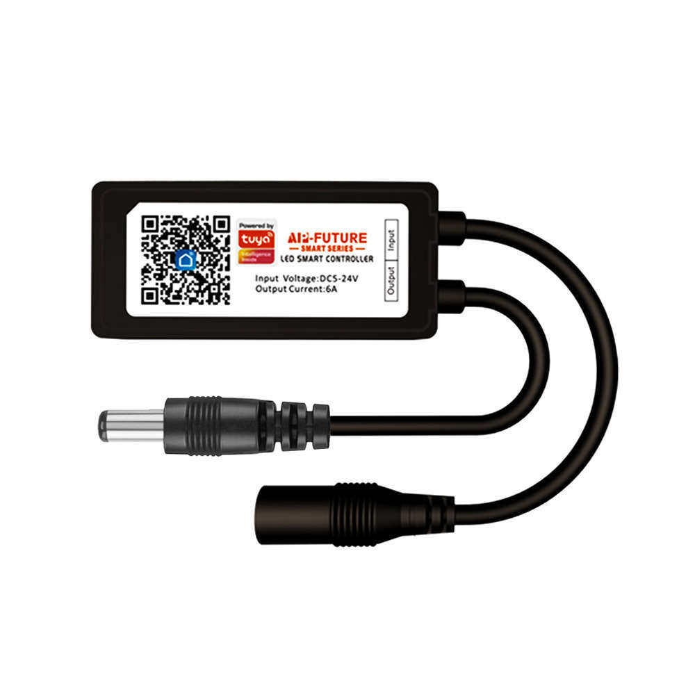 WIFI димер за управление на LED ленти чрез мобилни устройства с Android или Apple iOS. Управлението на осветлението работи с помощта на безплатно достъпното приложение "Tuya Smart" или "Smart Life - Smart Living", което може да бъде изтеглено от Google Play или Apple App Store или след сканиране на QR кода върху тялото на контролера или от ръководството. Smart димера е съвместим с множество приложения за виртуални асистенти и ви позволява да добавяте към група устройства, които могат да се контролират с помощта на виртуалния асистент (най-популярните приложения за помощ на Google Home или Amazon Alexa). Функция за споделяне на контрол - потребителят може да предостави разрешения за управление на димера на други потребители. Димерът може да се управлява и чрез интернет отвсякъде. Бутонът на корпуса на дистанционното управление има функция ON / OFF, функция за сдвояване на дистанционното управление с мобилното устройство и функция за превключване на режима на осветление. Димерът има DC5.5 / 2.1 входен и изходен конектор за лесна инсталаци.