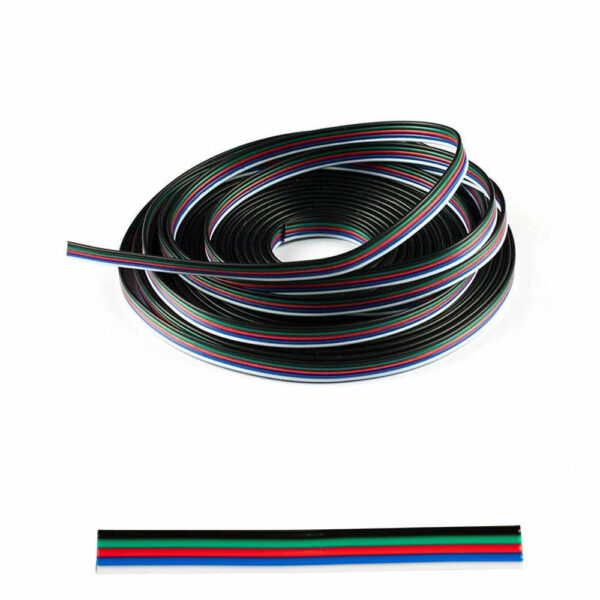 RGBW кабел за LED осветление - плосък цветен кабел с допълнителен цвят, предназначен за RGBW led осветление. Подходящ за свързване на RGBW контролер с RGBW led лента или за връзка между две многоцветни лед ленти. Висoкокачествен RGBW кабел с калайдисани проводници, подходящ за лесно запояване и монтаж на led лента.
