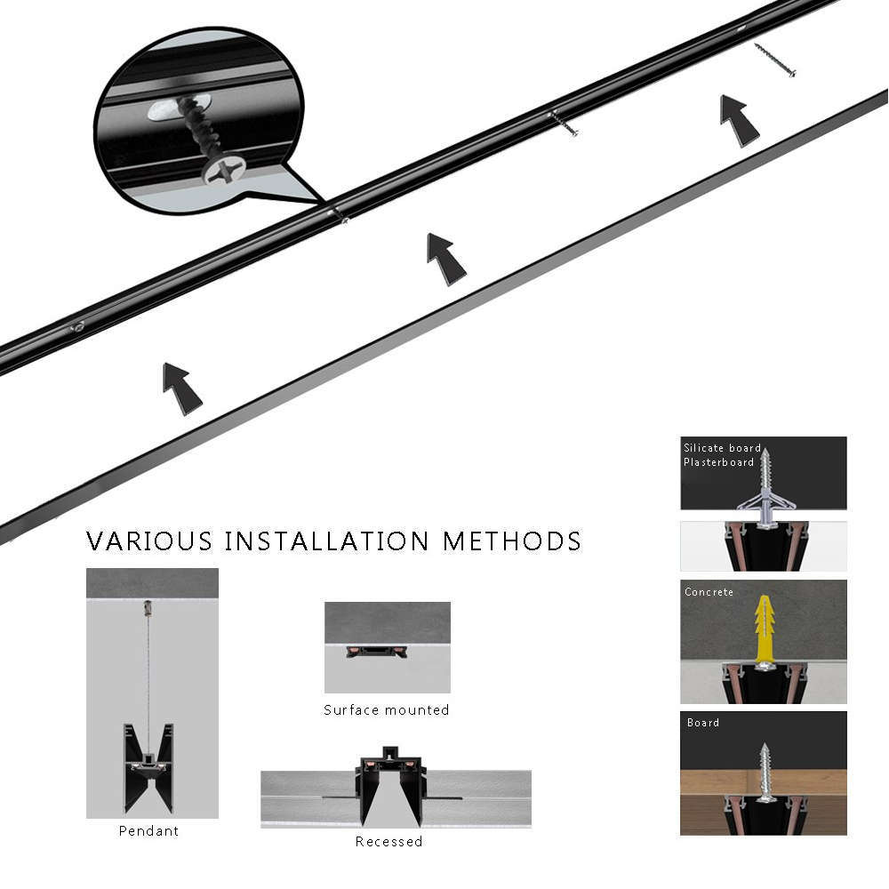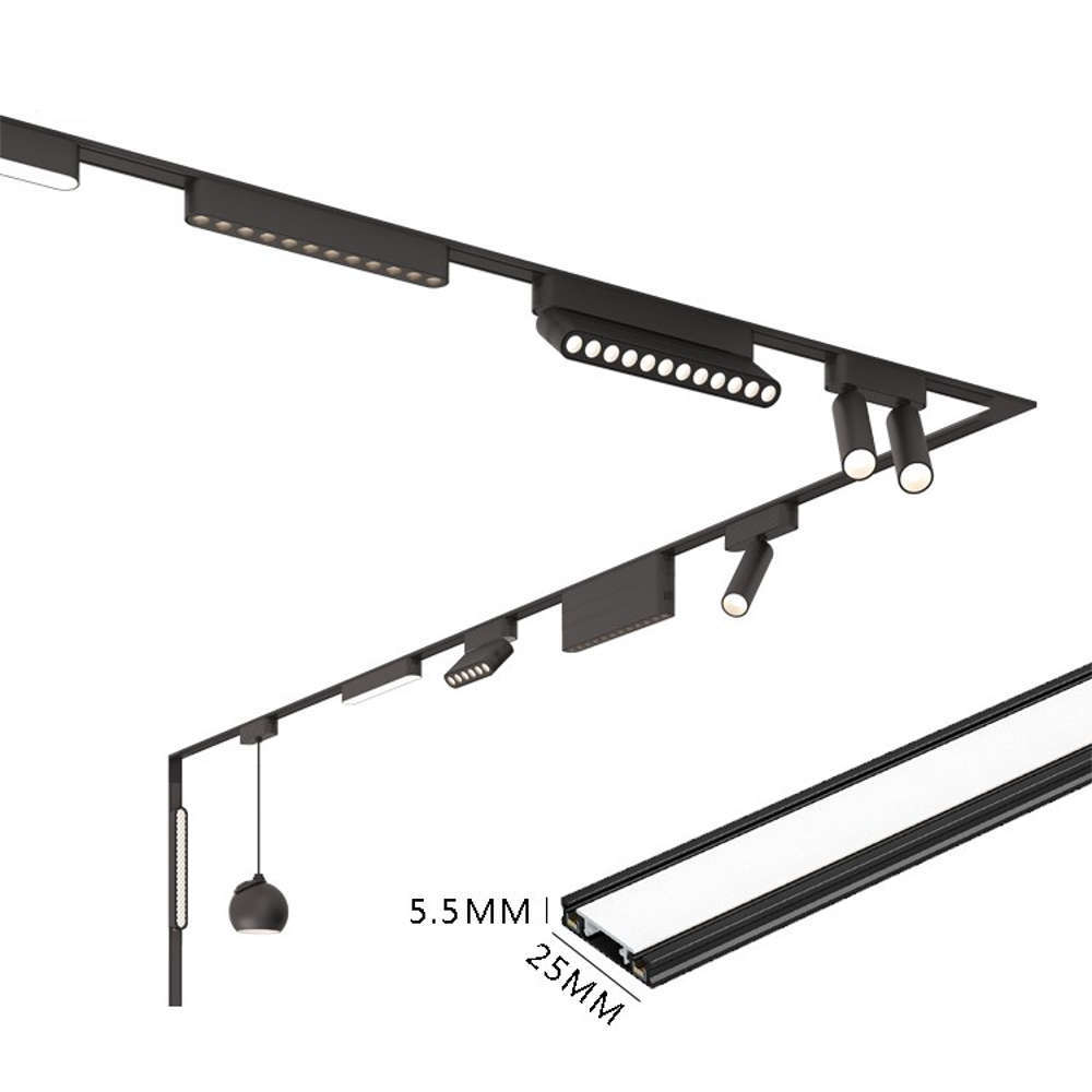 Магнитна релса LVT Luxo 3036 - тази мини магнитна шина ви позволява да комбинирате акцентиращо и основното осветление във всякаква форма. Изработена е от висококачествен алуминий и съдържа 2 проводника за индивидуална или безжична настройка на осветлението. Магнитна релса LVT Luxo 3036 има много възможности за приложение, тъй като размерите и са сведени до минимум, което позволява повърхностно монтирана светлинна инсталация, която изисква само минимално пространство. Независимо дали е в жилищни помещения, хотели или в търговски обекти, различните LED осветителни тела за магнитен монтаж на релсата могат да се използват за основно осветление или декоративно осветление, предлагайки множество начини за гъвкавост. Налични цветове: черен и бял. Крайните тапи и декоративен капак са включени към релсите.