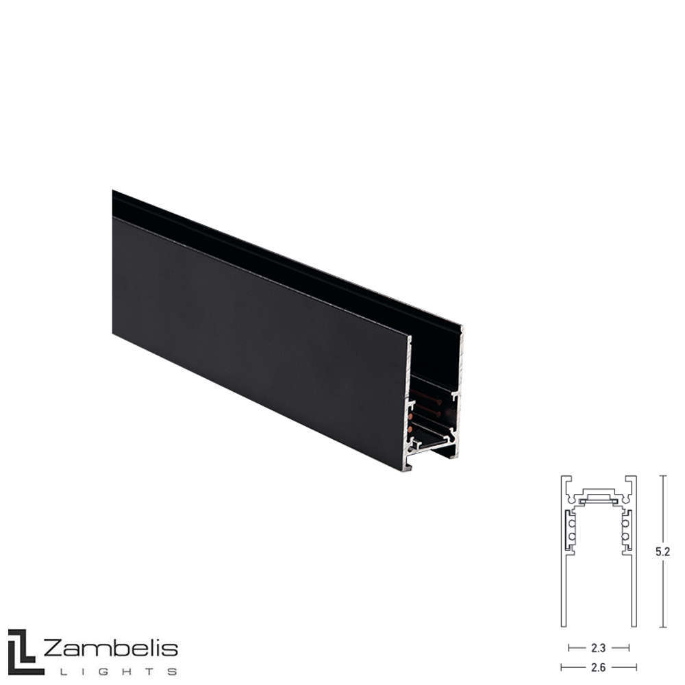 Шина за магнитно осветление Zambelis 2082B-1 - магнитна релса за външен монтаж подходяща за домашни, търговски и офис приложения и зони с нормални тавани или такива от гипсокартон. 48V релсова система с ниско напрежение с магнитна фиксация, с възможност за допълнително оборудвана за функция за димиране на DALI, Triac, BLUETOOTH управление, както и ON/OFF. С магнитната фиксация всички магнитни прожектори и модули могат лесно да се монтират, препозиционират и превключват в шината, без да са необходими никакви инструменти. Има различни видове свързващи модули и магнитни осветителни тела, които осигуряват максимална гъвкавост при проекти, които се движат по стени, тавани или комбинация от двете. Магнитни шини от серии Surface Track for 48V Magnetic System Zambelis се предлагат в черно и бяло с дължина от 1, 2 и 3 метра.