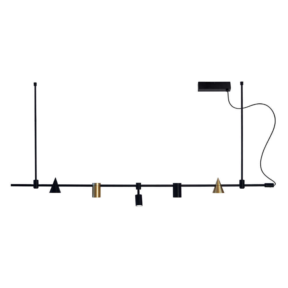 Линейна шинна система за окачване на таван, алуминий, цвят черен мат, съвместима с трансформатори и осветителни тела Viokef Hoop 24VDC. Доставя се със захранващ кабел и розетка. Подвижни 2 рамена, позволяващи различни конфигурации на осветлението.