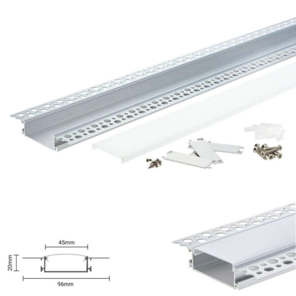 Широк алуминиев профил за вграждане в гипсокартон 2 метра Optonica 5134 е висококачествен LED профил, специално за монтаж на LED ленти. Благодарение на своя дизайн и атрактивно анодизирано покритие, той е перфектно решение за естетично и функционално осветление. Анодизираният алуминий, от който е изработен профилът е с идеално гладка, естетична повърхност, и е идеален за осветителни проекти за основно осветление. Ширината на алуминиев профил за вграждане в гипсокартон Optonica 5134 е подходяща за монтаж на няколко LED ленти в паралел - четири броя с ширина до 10 mm всяка.