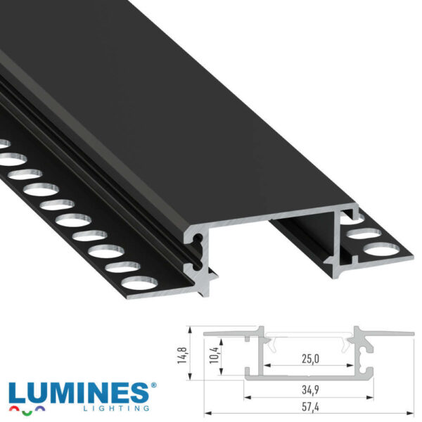 LED профил за гипсокартон 3 метра, за монтаж на LED лента с размер 25 милиметра, черен, без дифузер и крайни тапи.