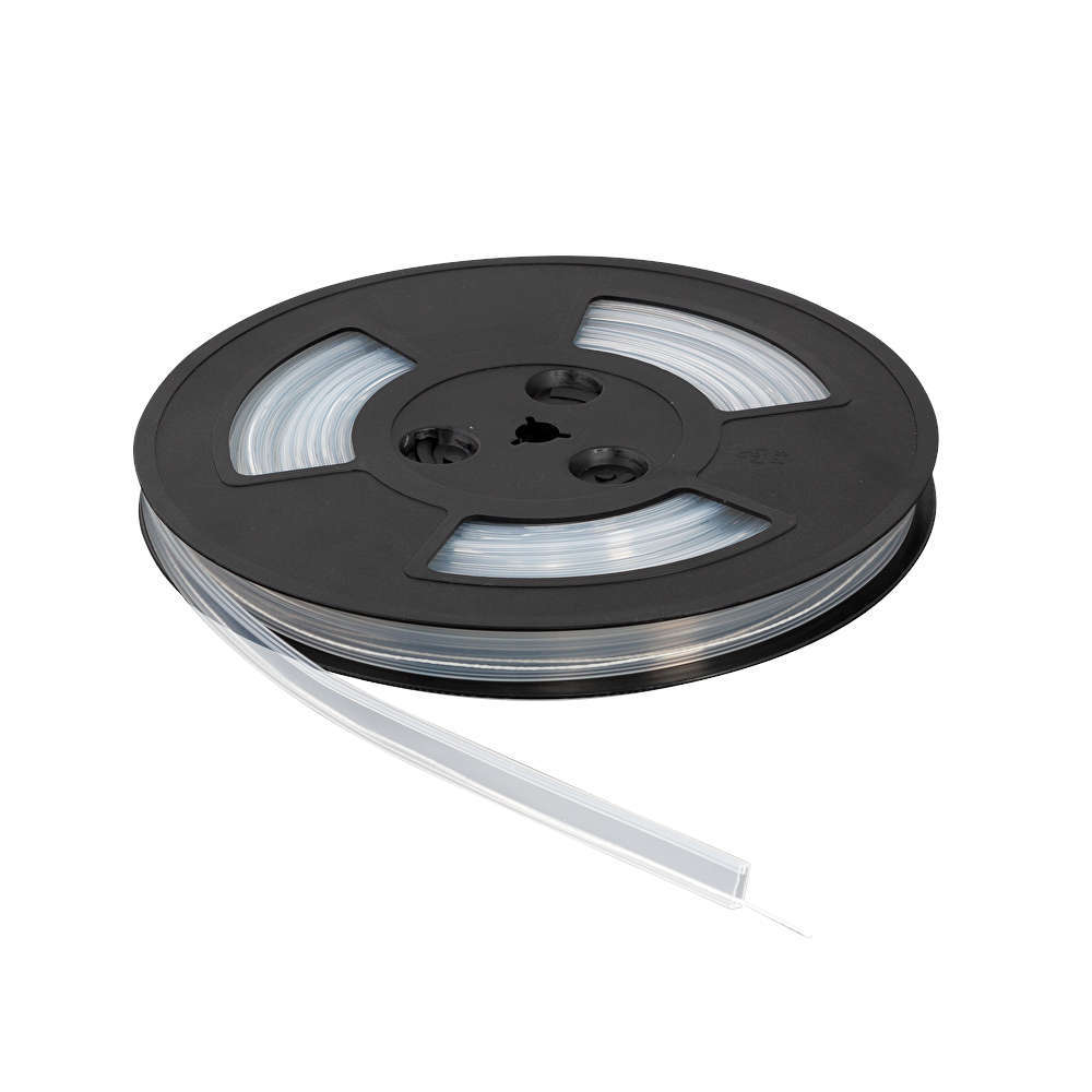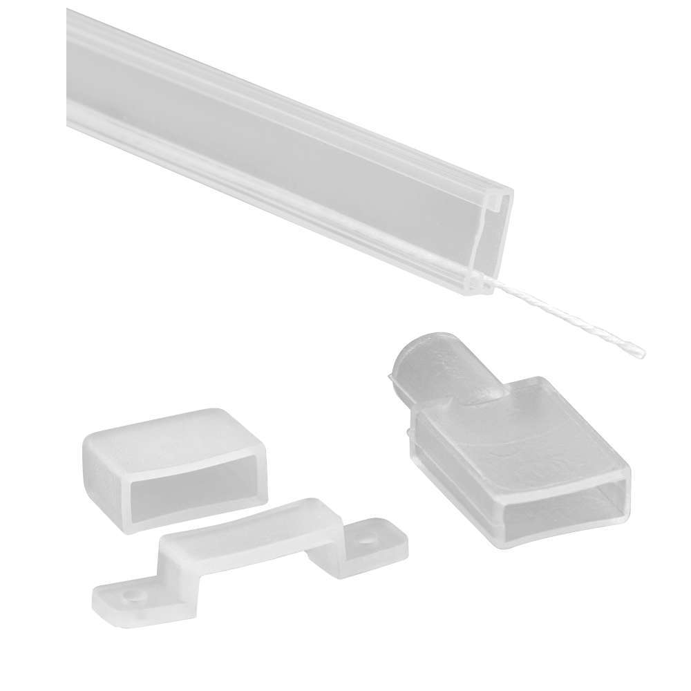 Прозрачен силиконов шлаух UltraLux ST1010 с правоъгълен профил, подходящ за използване с LED лента с широчина 10 мм. Шлаухът осигурява висока степен на защита срещу проникване на прах и влага до IP66, като предпазва LED лентата от вредното влияние на околната среда. Високата UV устойчивост гарантира, че шлаухът няма да се повреди от слънчевата светлина (подходящ за външни метеорологични условия). Шлаухът е оборудван с водеща монтажна връзка за изтегляне на лентата. При монтаж завържете здраво лентата с монтажната връзка в единия край на шлауха. Насочвайте LED лентата, докато изтегляте монтажната връзка, като в другия край едновременно с издърпването на връзката с лентата, вдухайте въздух под налягане от компресор (насочите дюзата на пистолета за въздух директно в отвора на шлауха). Чрез едновременно издърпване и вдухване на сгъстен въздух изтеглете лентата по цялата дължина на шлауха. Уплътнете краищата и залепете крайните тапи чрез неутрален силикон, който не причинява корозия. Монтирайте лентата върху желаната повърхност чрез силиконовите монтажни скоби.