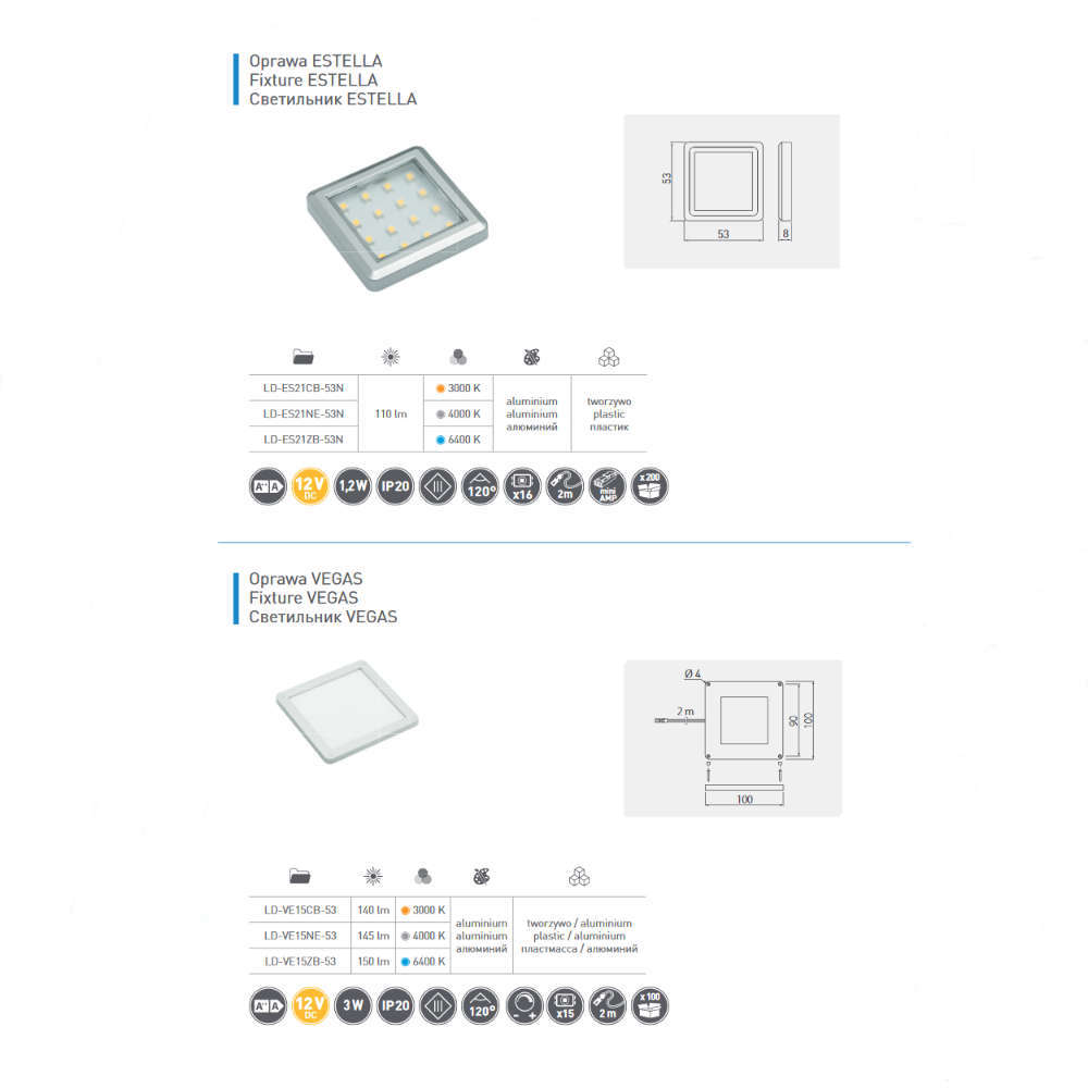 Мебелна LED луна за повърхностен монтаж, квадрат, стационарна, IP20, SMD диоди, 3W, 145lm, 12VDC, 4000K, 120°, алуминий