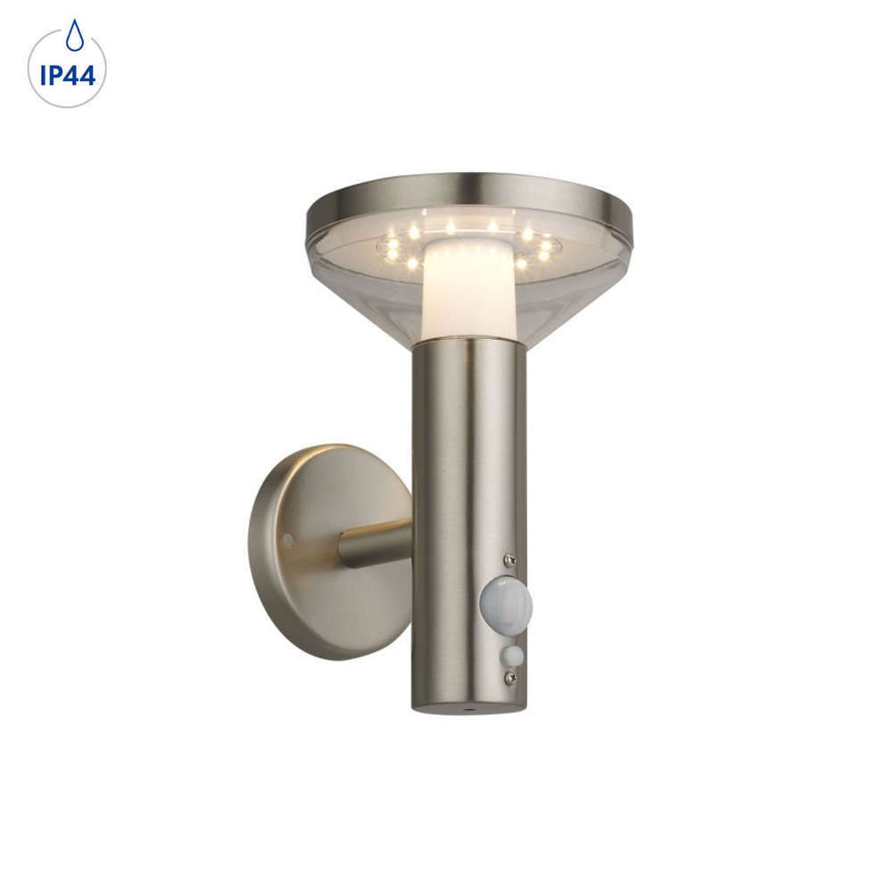 Със своята модерна визия и цветова неутралност сензорната соларна лампа се вписва във всички съвременни ексериорни стилове. Благодарение на слънчевата технология, осветителното тяло изисква място с пряко слънцегреене и никаква захранваща връзка. Следователно няма експлоатационни разходи за вашата соларна стенна лампа. Ще получите осветление на нулева цена, тъй като соларното осветително тяло произвежда собствена мощност със слънчевия панел и вградената батерия. Серията соларно осветление се допълва от соларен стълб и градинско осветително тяло соларно колче.