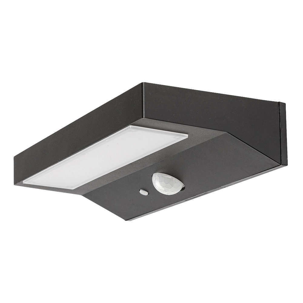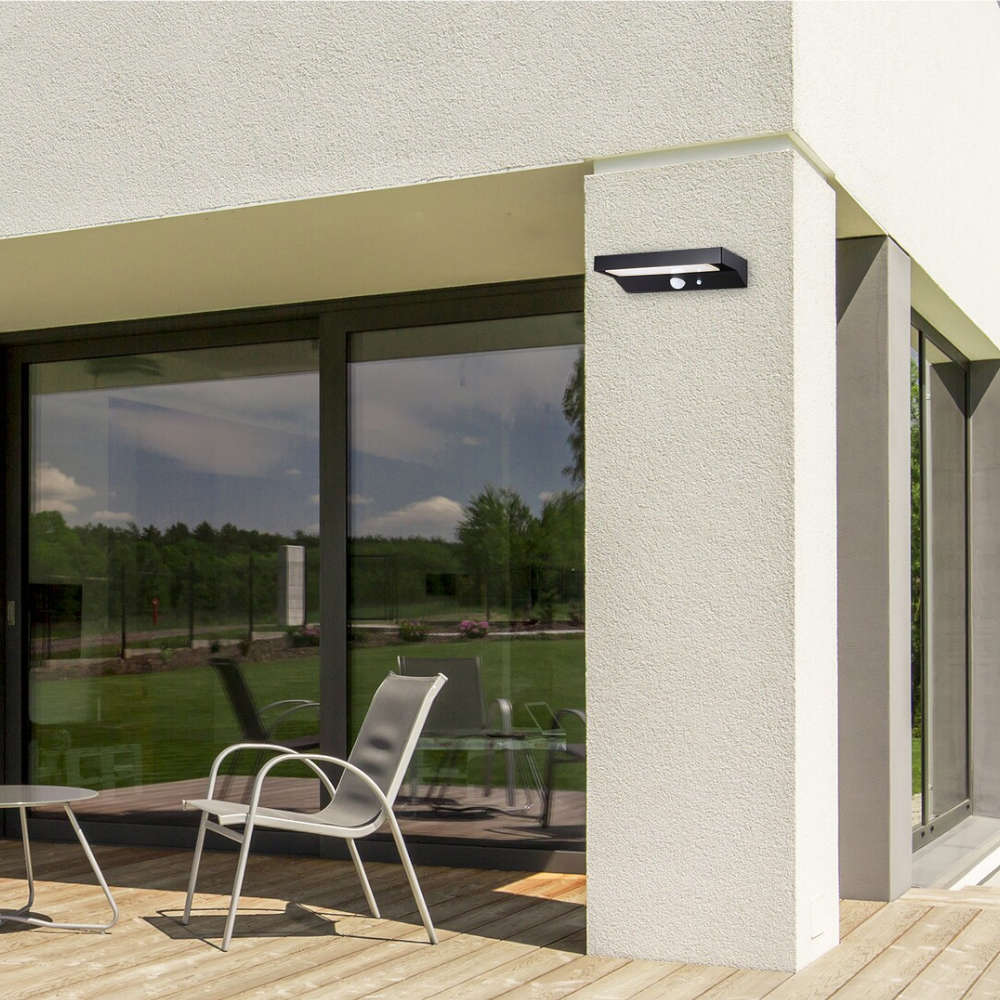 Соларно осветително тяло със сензор за движение LED 6W, 4000K, 450lm, алуминий и поликарбонат, черен цвят, батерия 3,7V 2200mAh