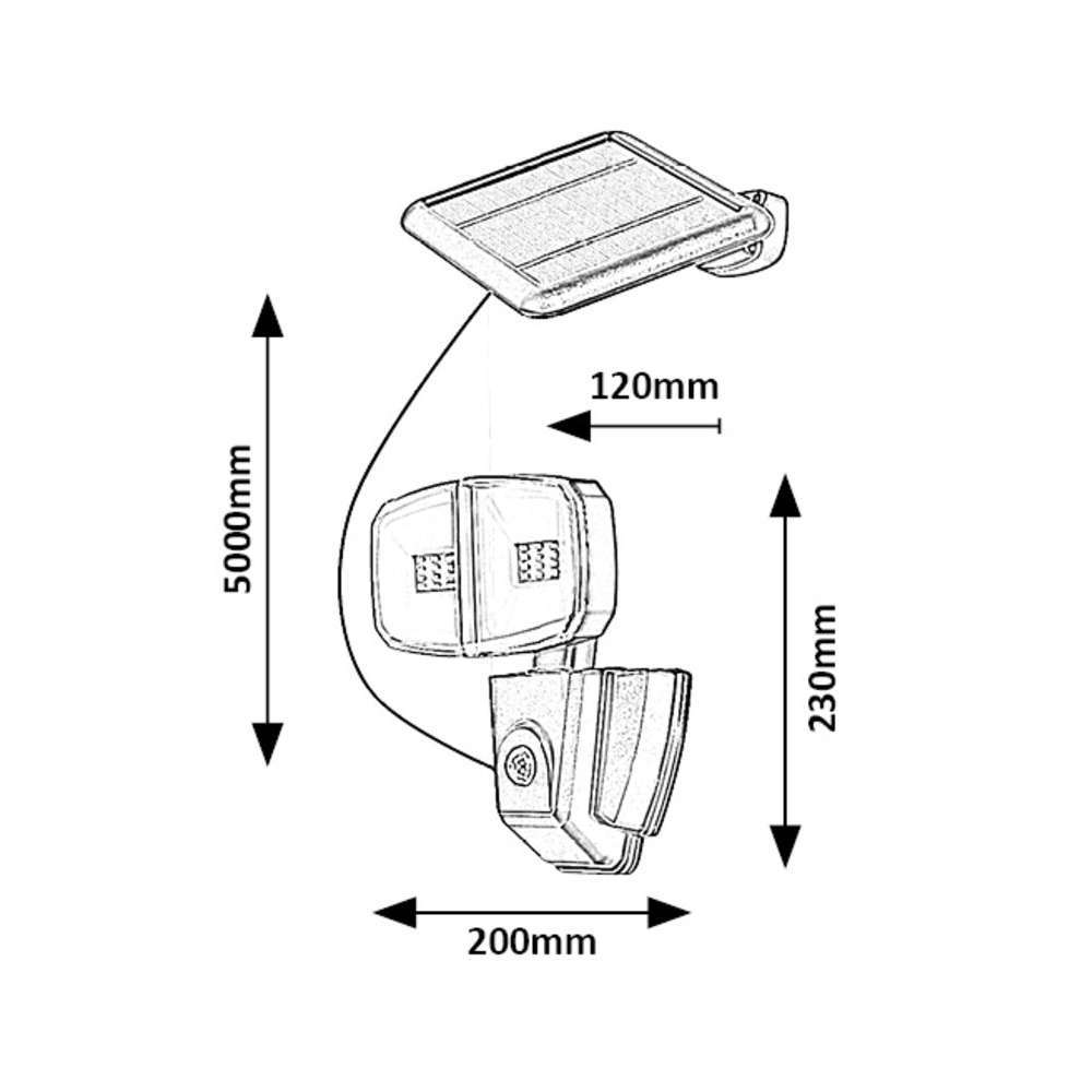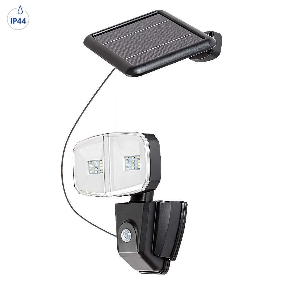 Соларно осветително тяло фасаден аплик със сензор за движение IP44, 12W, 4000K, 700lm, поликарбонат, черен цвят, батерия 3,7V 4000mAh