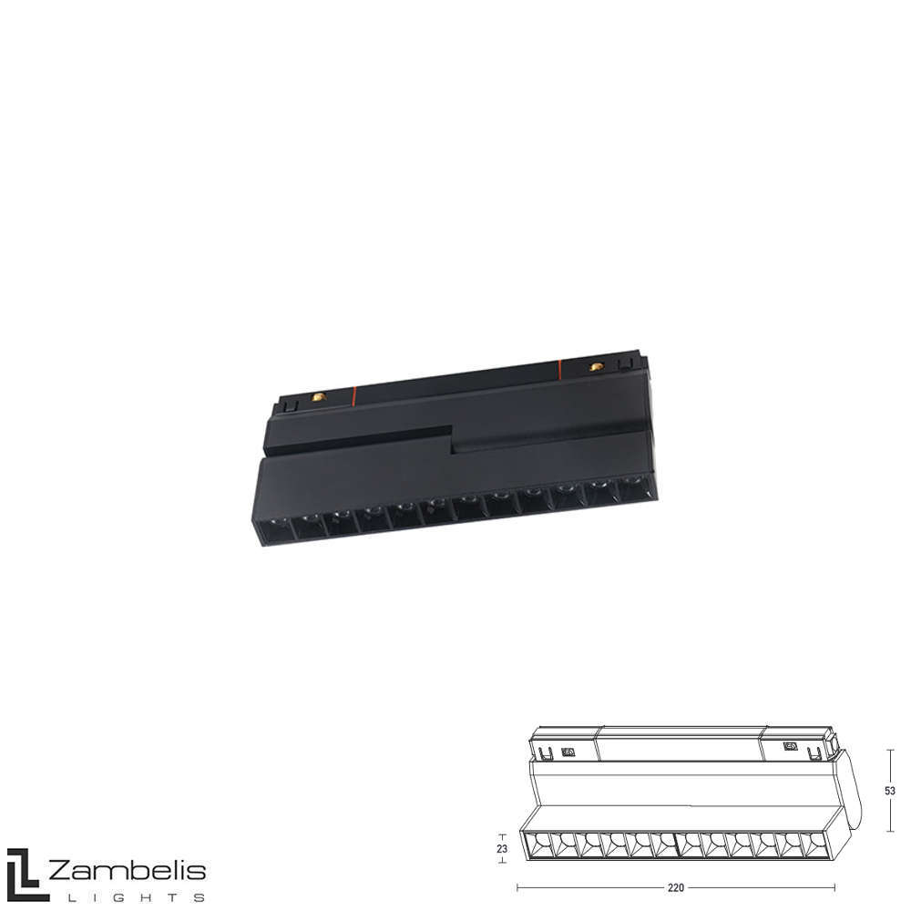 Spot магнитен LED прожектор Zambelis 20290 - линеен прожектор от най-висок клас, който е част от продуктовата фамилия Zambelis 48V Magnetic System, с интегрираните LED компоненти на Osram. Регулируемият линеен прожектор е подходящ за пространства, където е необходима насочена главна светлина с характеристика на ниски отблясъци или за по-големи приложения за осветяване на картини, стени, пана или там където конвенционалните прожектори са твърде груби. Spot магнитен LED прожектор Zambelis 20290 се предлага в дължини 220 mm.