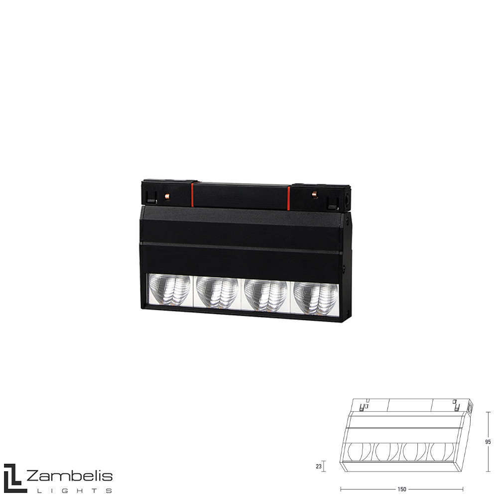 LED прожектор за магнитно осветление Zambelis 48VDC, 10W, 1100lm, 3000K, димиране Dali, светлинен лъч 50⁰ Asymmetric