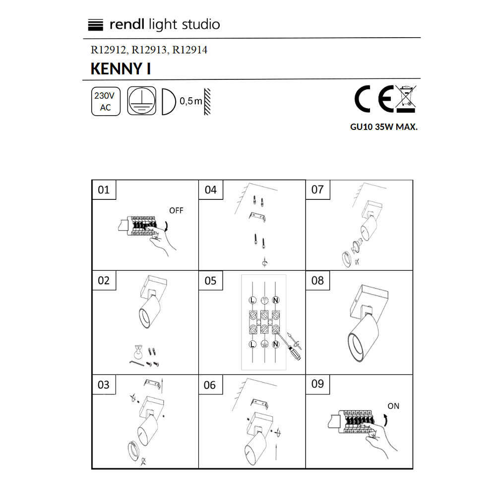 Спот осветително тяло Rendl Laight Studio KENNY I R12913 - елегантна серия от спотово осветление за крушки с фасунга GU10 със сменяеми цветни пръстени в бяло, черено или златисто. Спот за повърхностен монтаж от алуминий, допълнен с капак около лампата, който ще намали отблясъците. Предлага се в 3 различни покрития - черно, бяло или сребристо. Подходящ за монтиране на тавани и стени. Ротация и насочване на тялото в желана посока.