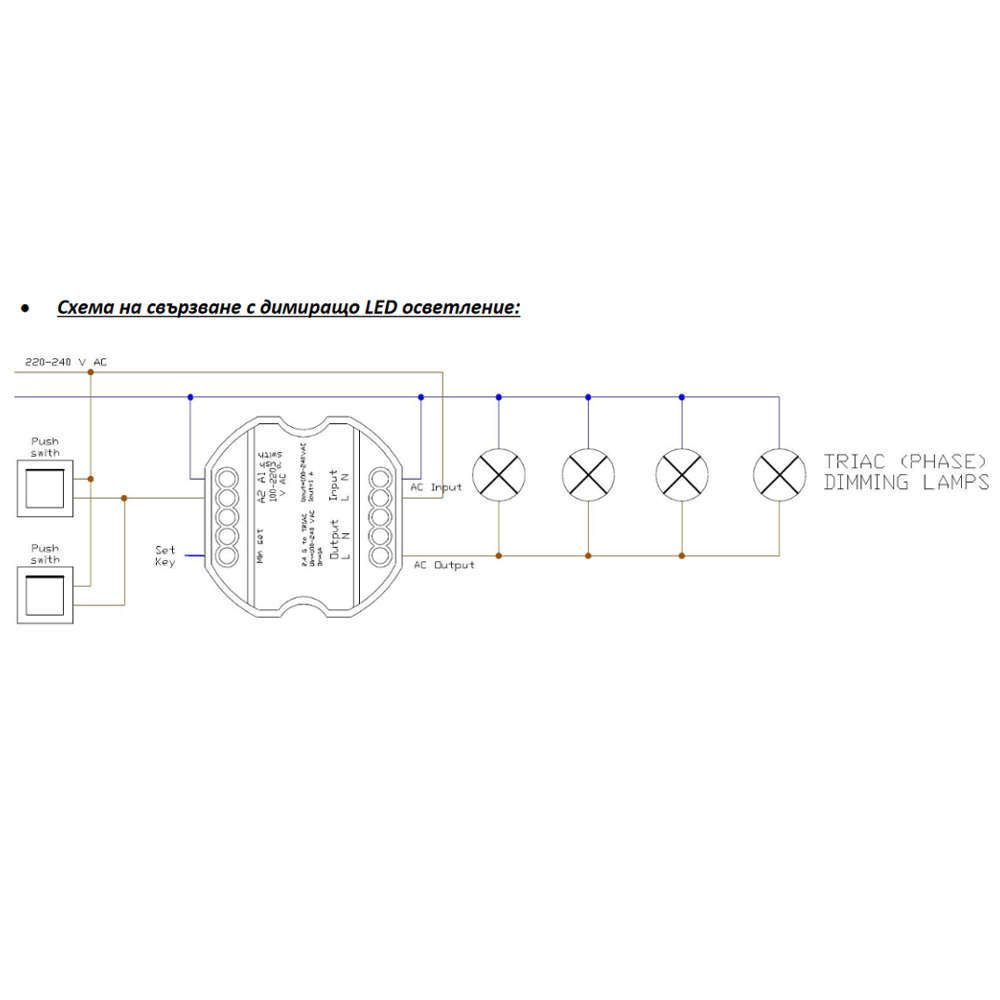 - Обхват на димиране 0-100%