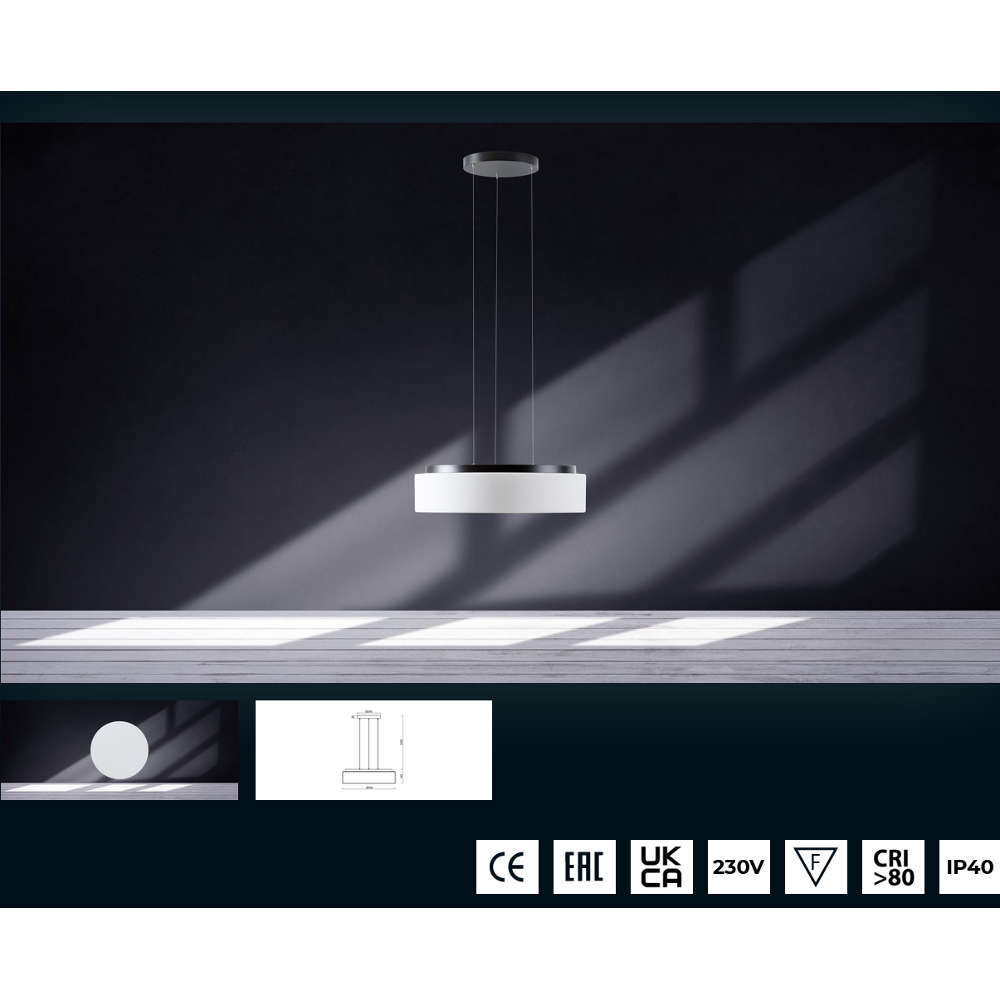 Стъклен луксозен пендел 220V, 47W, 4000K, 4610lm, CRI>80, IP40, метално черно тяло и стъклен абажур TRIPLEX OPAL