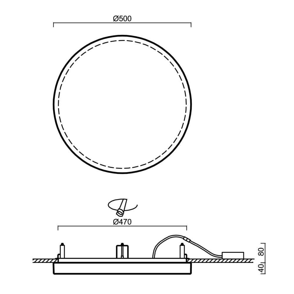 Плафониера за вграждане IP44, 220V, 49W, 4650lm, метално тяло и стъклен абажур TRIPLEX OPAL ф500мм