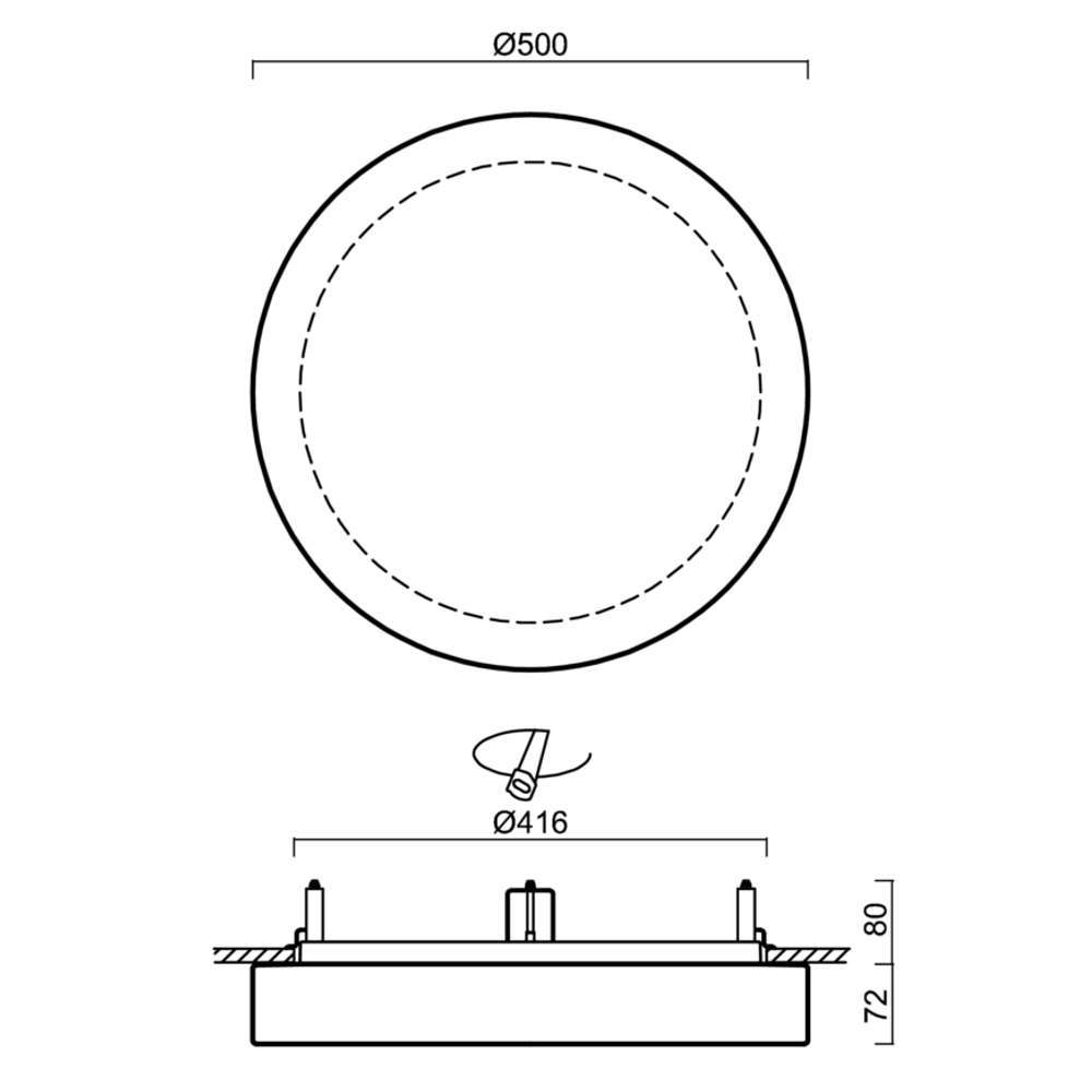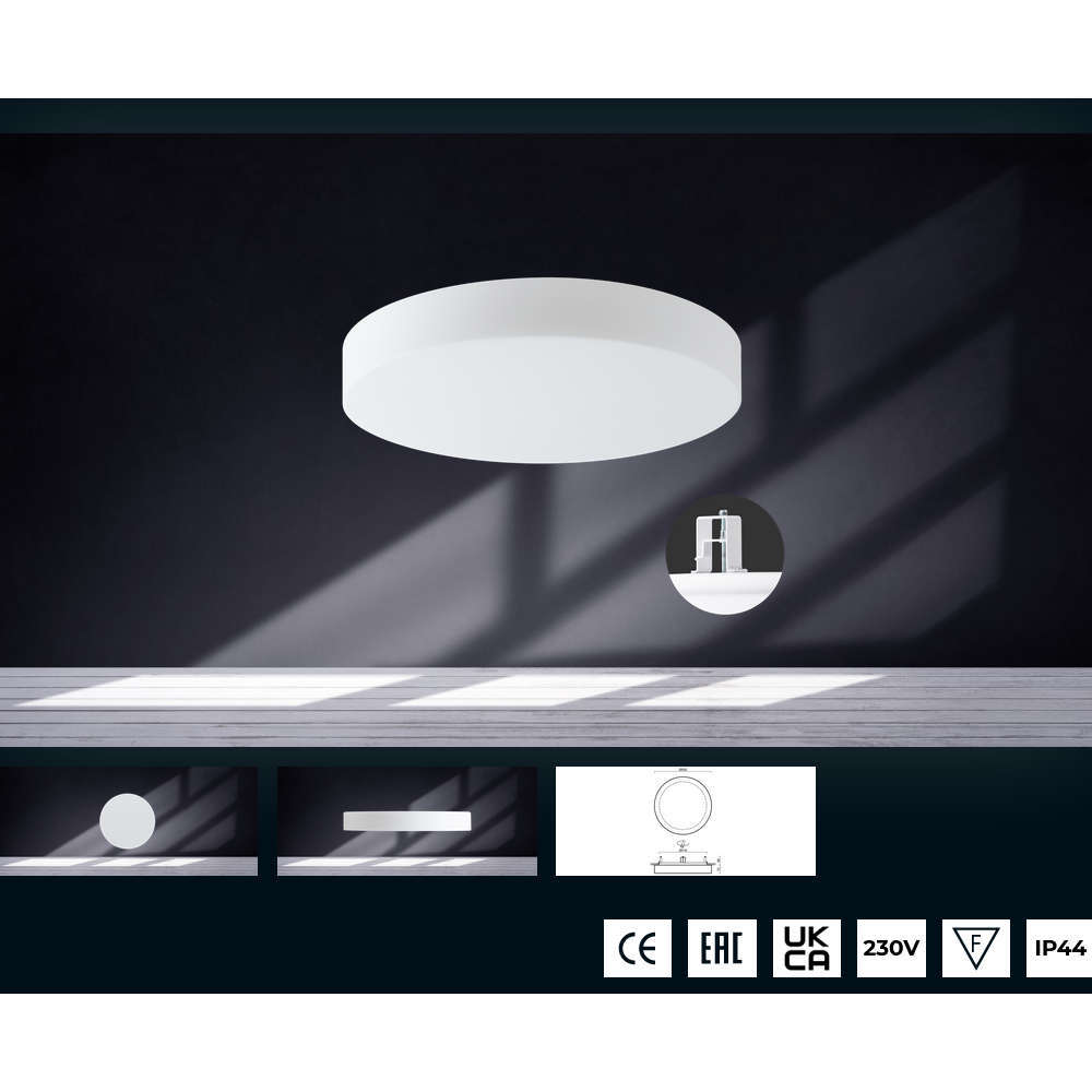 Плафониера за вграждане 220V, IP44, фасунги 3xE27, метално тяло и стъклен абажур TRIPLEX OPAL ф500мм
