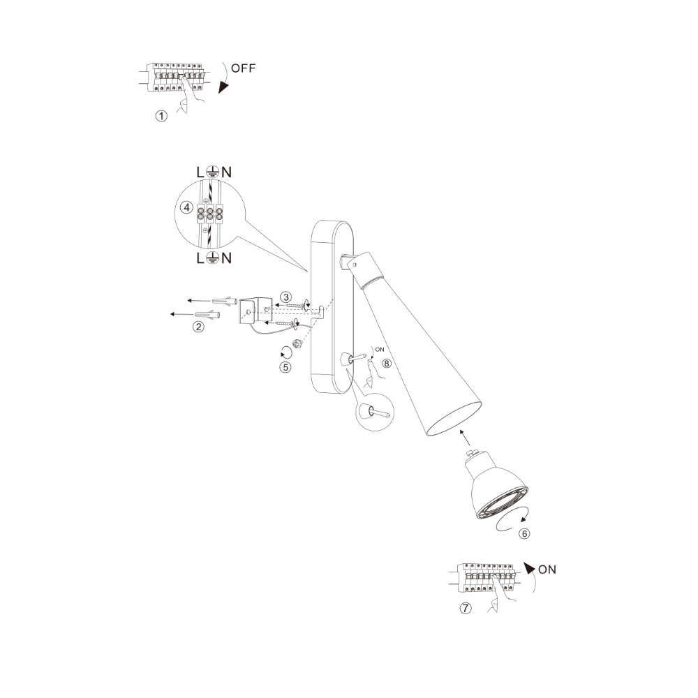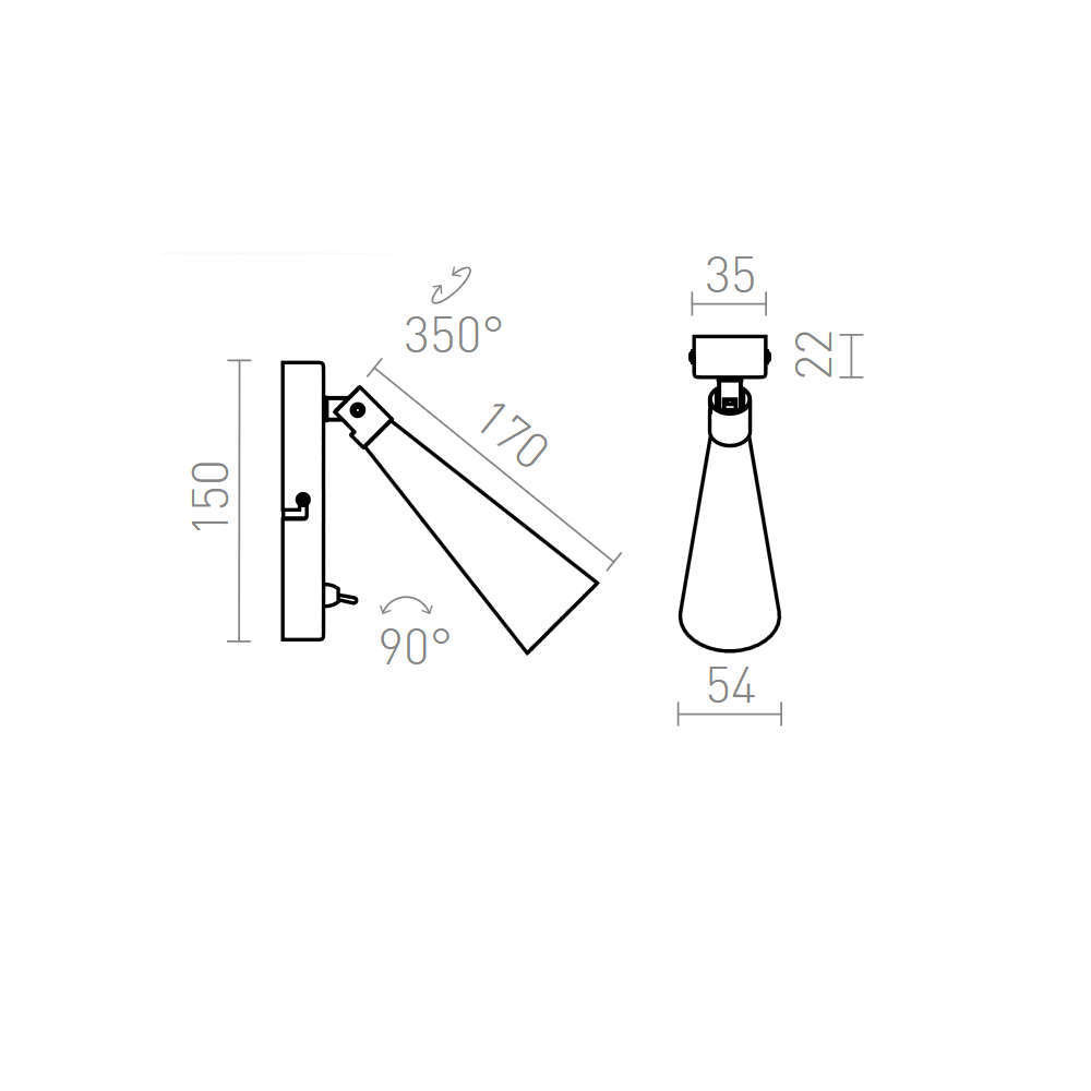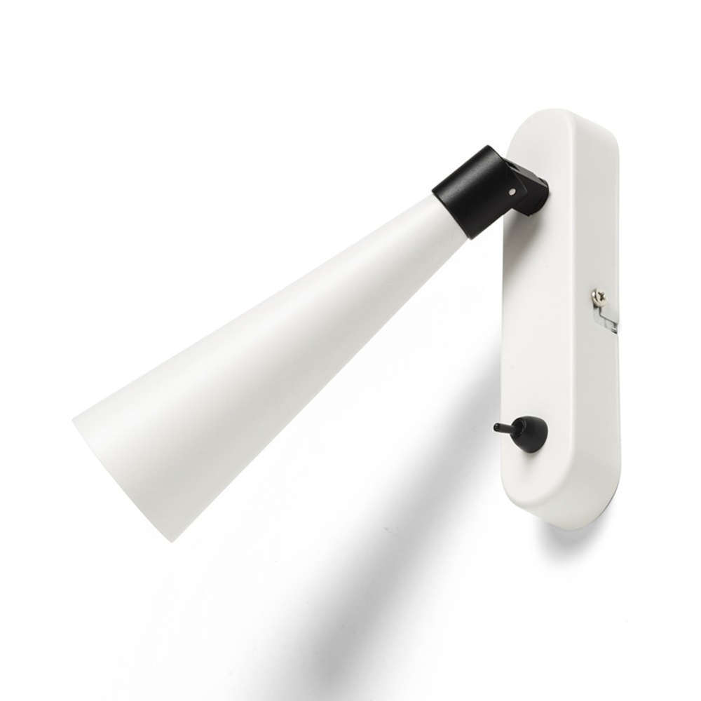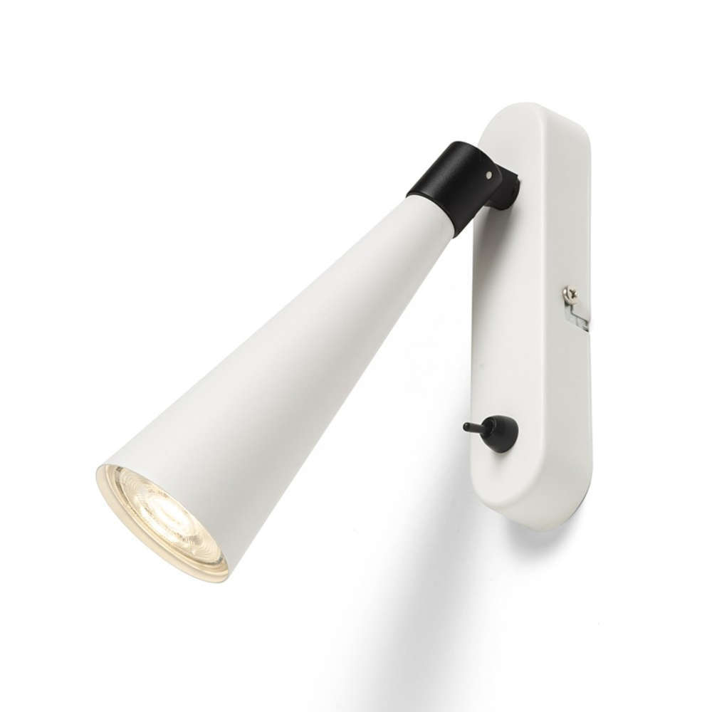 Осветително тяло за стена аплик с ключ, фасунга GU10, метално конусовидно тяло и основа в цвят бял мат, държач в цвят черен мат