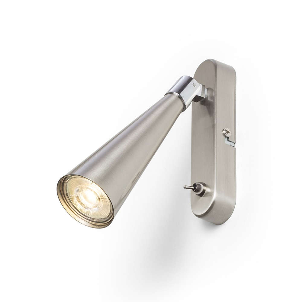 Осветително тяло за стена аплик с ключ, фасунга GU10, метално конусовидно тяло и основа в цвят матиран никел, държач в цвят хром