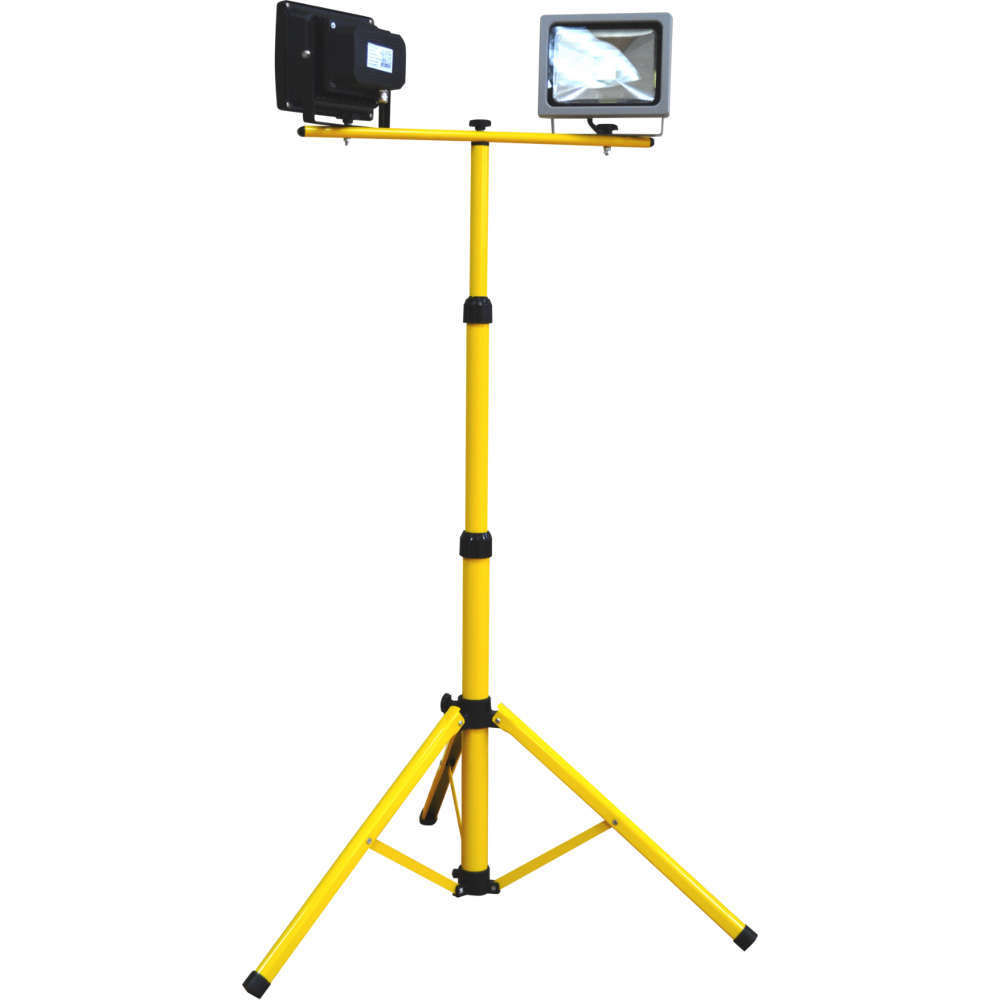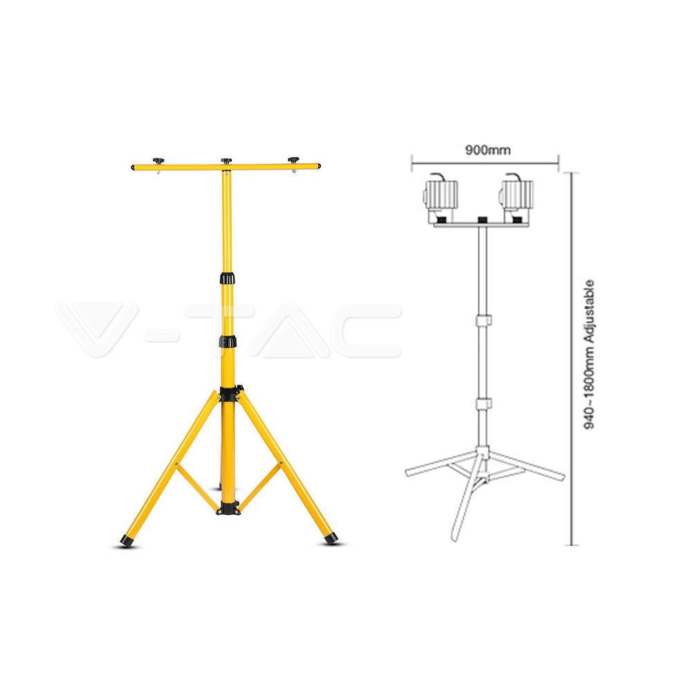 Статив за прожектори с възможност за монтаж на 2 броя led прожектори с мощност до 50W. Преносима стойка за прожектори с регулируема височина 94-180 см подходяща за осветяване на външни площи и обекти. Сгъваем статив за прожектори подходящ за излети, за работни площадки и складови пространства.