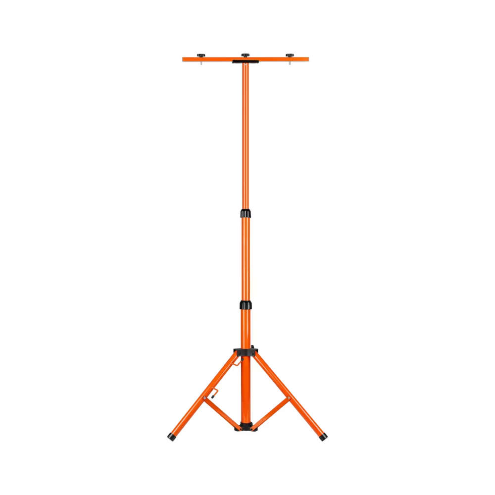 Стойката за прожектори LVT 0962 е стабилен двоен статив, предназначен за монтаж на един или два прожектора при професионална и домашна употреба. Изработена от здрав метал, тя осигурява надеждна опора и дълъг експлоатационен живот. Максималната височина от 1.6 метра и напречната греда 50 cm позволяват равномерно осветяване на работни зони. Сгъваемата телескопична конструкция улеснява транспортирането, а яркият оранжев цвят подобрява видимостта при работа на открито и на строителни обекти.