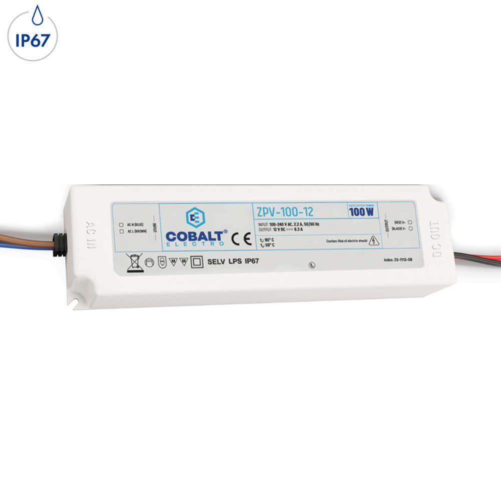 Трансформатор за LED лента 12VDC със степен на влагозащита IP67 подходящ за захранване на всякакви приложения свързани с LED осветление. Захранващите блокове се характеризират със стабилно изходно напрежение и широк обхват на входното напрежение. Високата стойност на класа на защита IP67 позволява монтаж на захранващия блок на места, изложени на неблагоприятни атмосферни условия. Компактите размери на захранването позволява монтаж в зони с ограничен достъп.