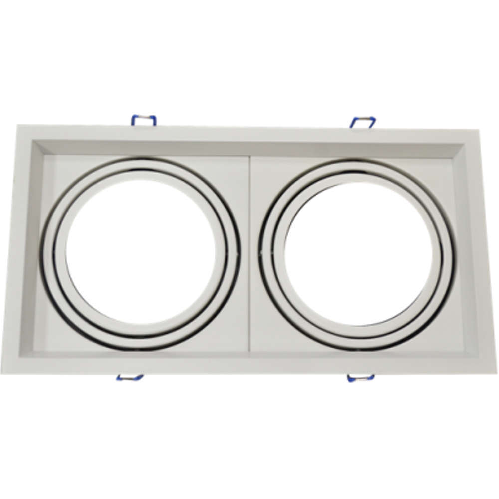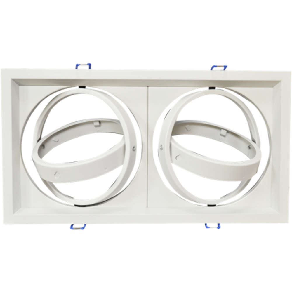 Двойна карданна луна за вграждане на LED лунички тип AR111в окачен таван. Алуминиево тяло за вграждане с променлив ъгъл, невлагозащитено. Бял двоен корпус за AR111 лунички.