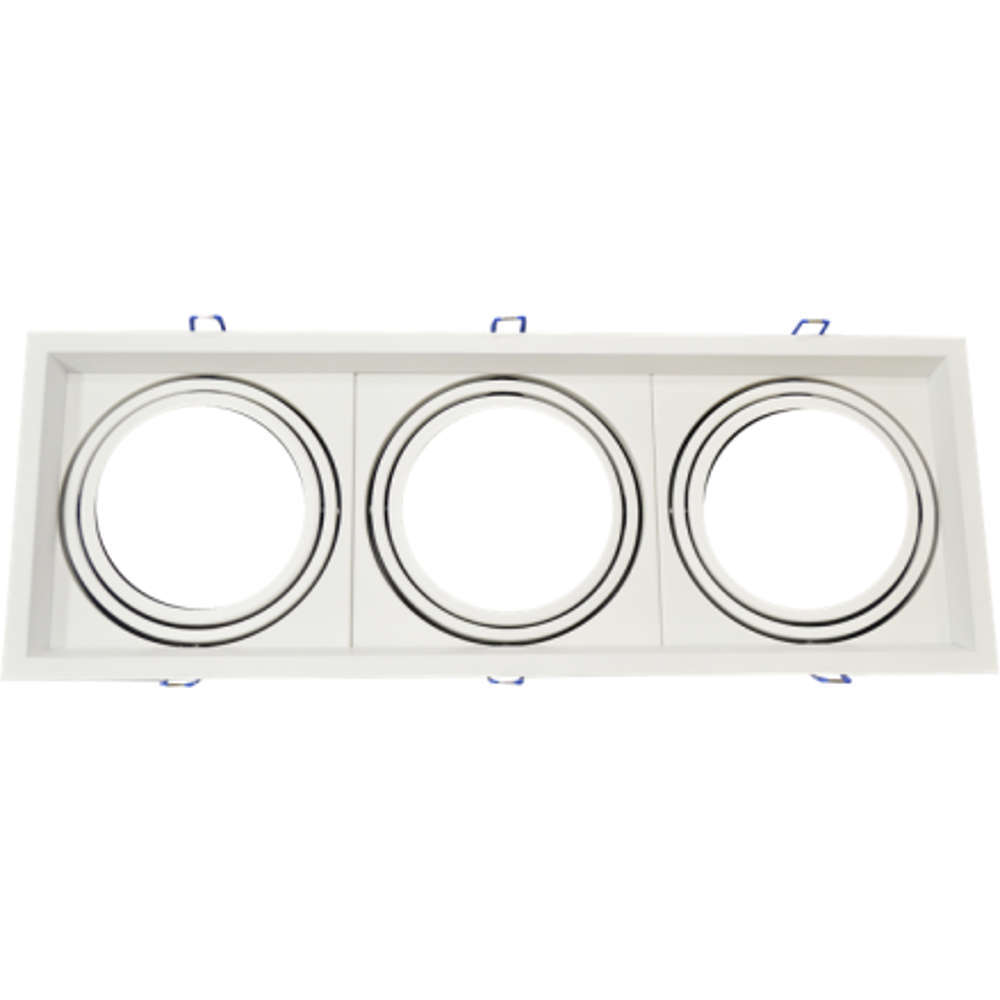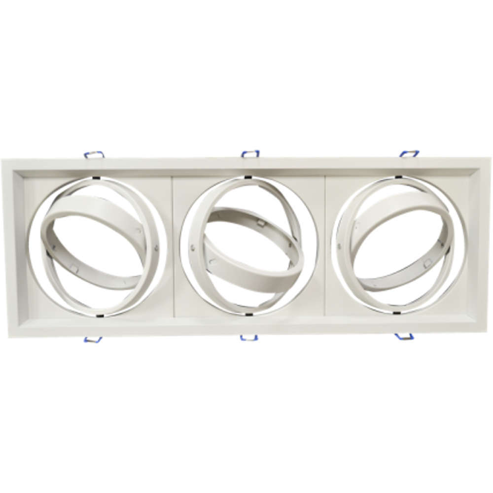 Тройно осветително тяло луна за вграждане, съвместима с LED лунички тип AR111. Алуминиево тяло за вграждане с променлив ъгъл, невлагозащитено. Бял троен корпус за AR111 лунички.