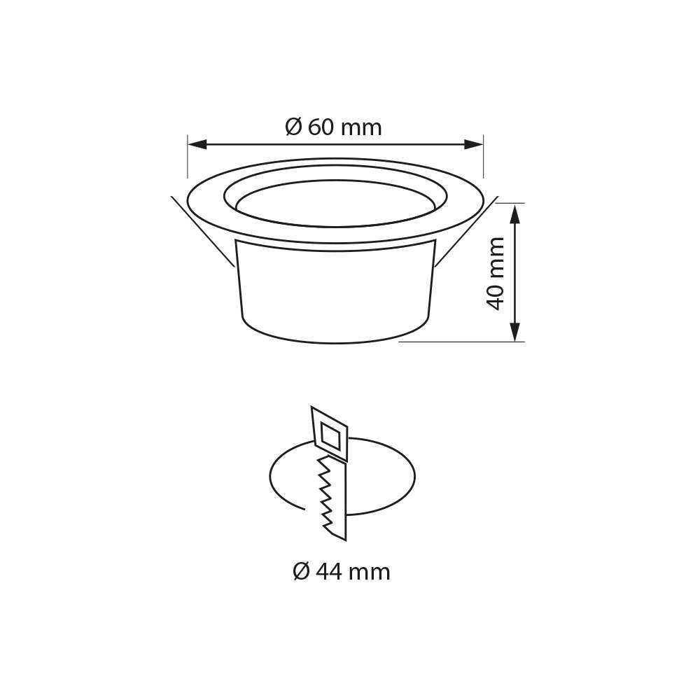 - Монтажен отвор - ф44mm