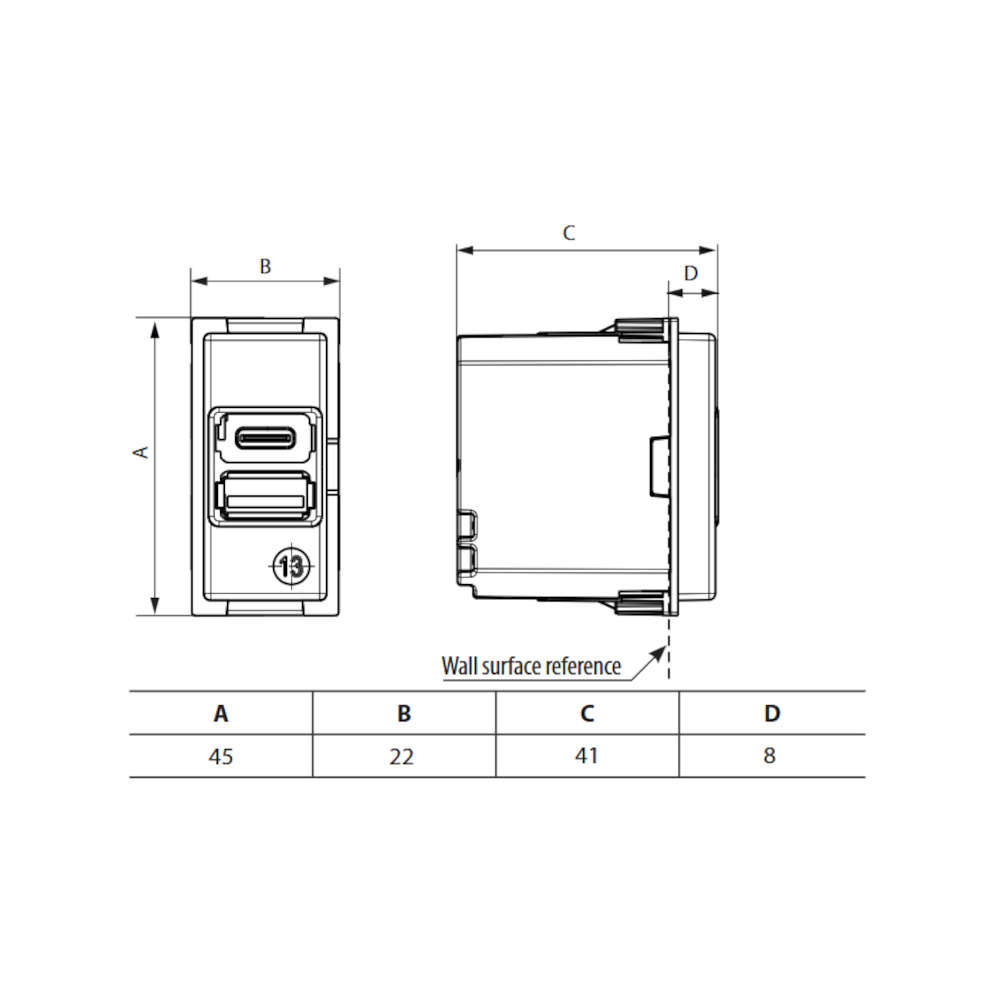 USB розетката Bticino Living Now K4191AC е практично решение за съвременни електроинсталации, което позволява директно зареждане на устройства без нужда от допълнителни адаптери. Съчетавайки USB-A и USB-C порт, тя осигурява гъвкавост и съвместимост както с по-стари, така и с най-новите устройства.