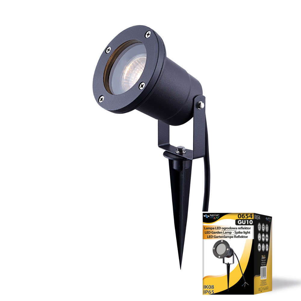 Външна лампа за градина LVT-0654 - влагозащитена градинска лампа подходяща за външно осветление за двор, за декоративно осветяванe на храсти и дървета, алеи и пътеки. Осветителното тяло е изработено от алуминиева сплав устойчива на атмосферни влияния и закален темпериран стъклен дифузер. Инсталираната в корпуса фасунга GU10 е адаптивна към всички модели LED лунички GU10. Лампа за външно осветление LVT-0654 се доставя с кабел 3x0.75mm2 с дължина 20см.