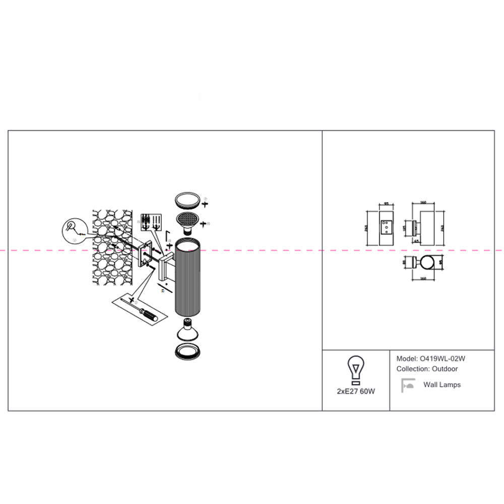 Влагоустойчиво осветително тяло за стена, алуминий и стъкло, цвят черен, двустранно осветяване