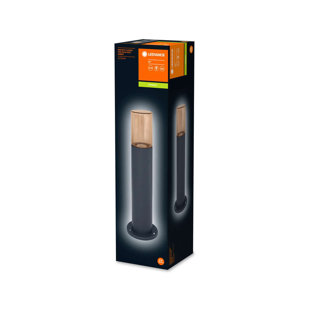 Външно осветително тяло градински стълб Ledvance ndura Classic Pipe 50sm Post Amber - градинскатa лампа серия Pipe се съчетава особено добре с модерната екстериорна среда, а дизайнът е приятно изтънчен. Предвидено е източникът на светлина да е лампа E27. Дифузерът е стъклен, опушен, а корпусът на долната част представлява тръбна форма, класически изработена от неръждаема стомана за устойчивост на атмосферни влияния. Модерната градинска лампа Ledance Pipe може да се монтира като осветление за пътеки и алеи и осигурява необходимата светлина, когато навън вече е тъмно.