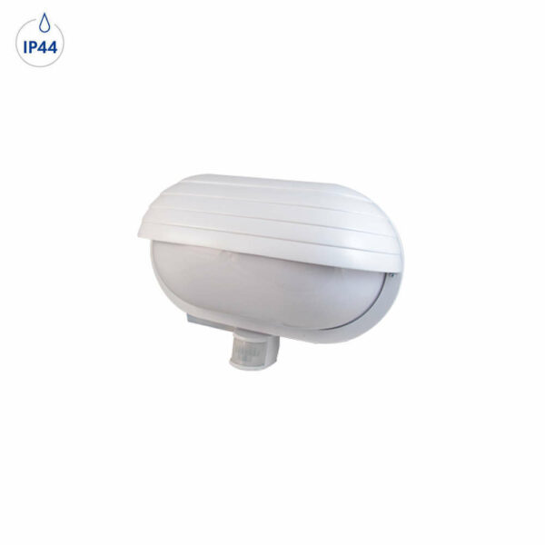Фасадно осветително тяло със сензор за движение LVT Froda 3294, 220V, 1xE27, max. 1x60W, IP44, PC бяло тяло