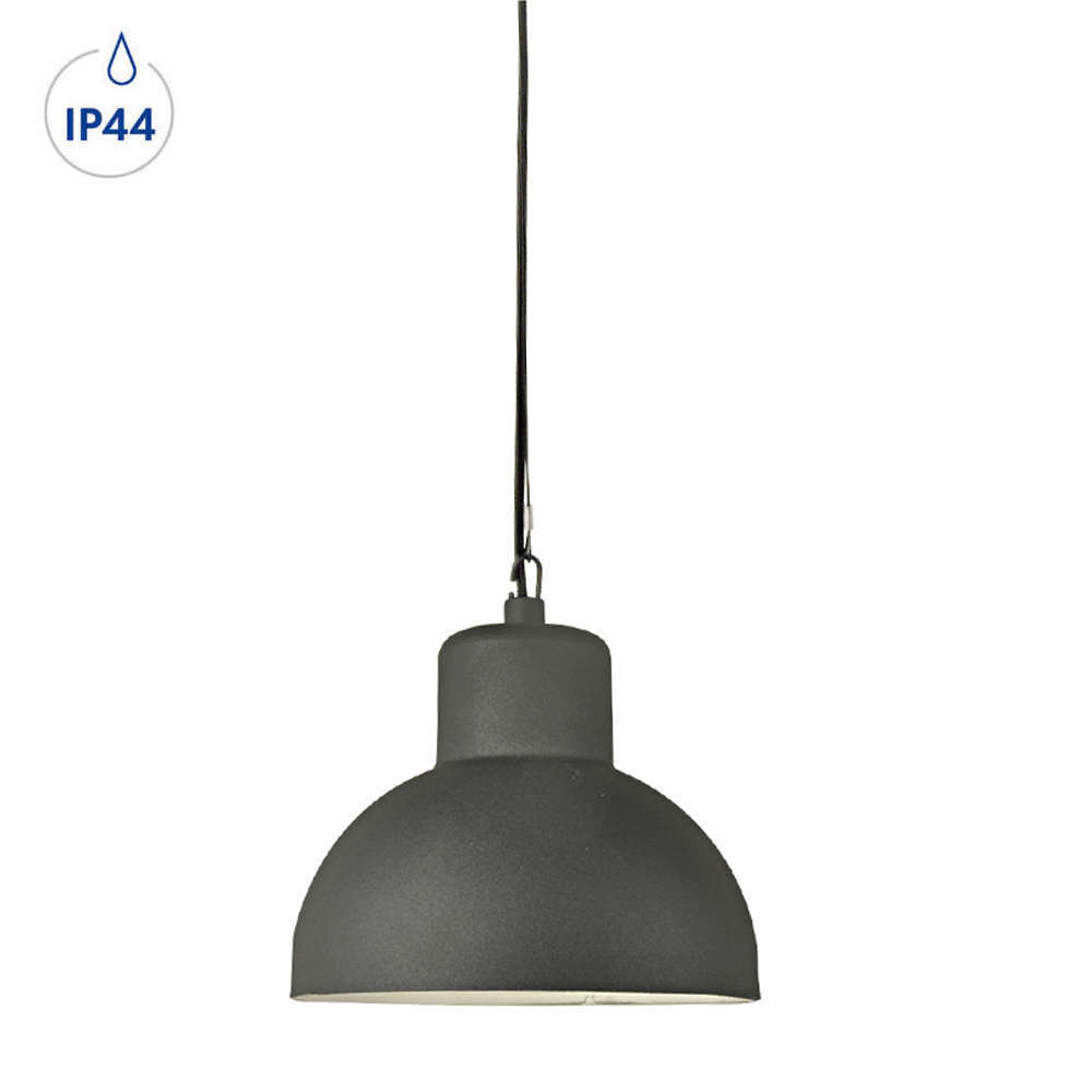 Влагоустойчив градински пендел IP44, черно тяло с поликарбонатен дифузер, фасунга Е27