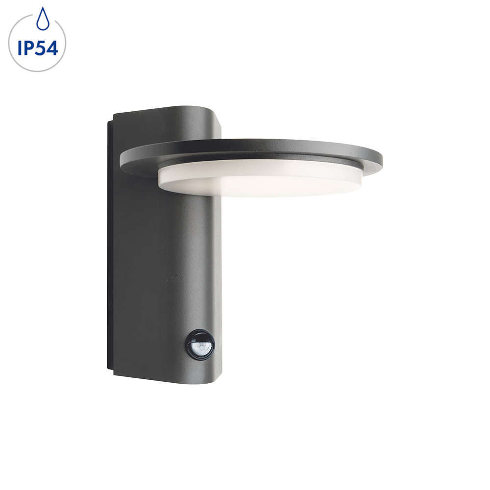 Влагоустойчив аплик с PIR сензор за движение, алуминий/поликарбонат, цвят антрацит