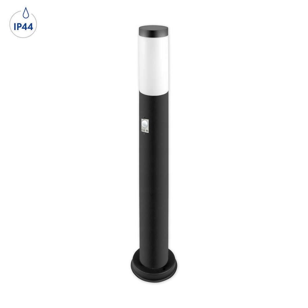 Градинска лампа със сензор IP44, фасунга Е27, неръждаема стомана и поликарбонат, цвят черен