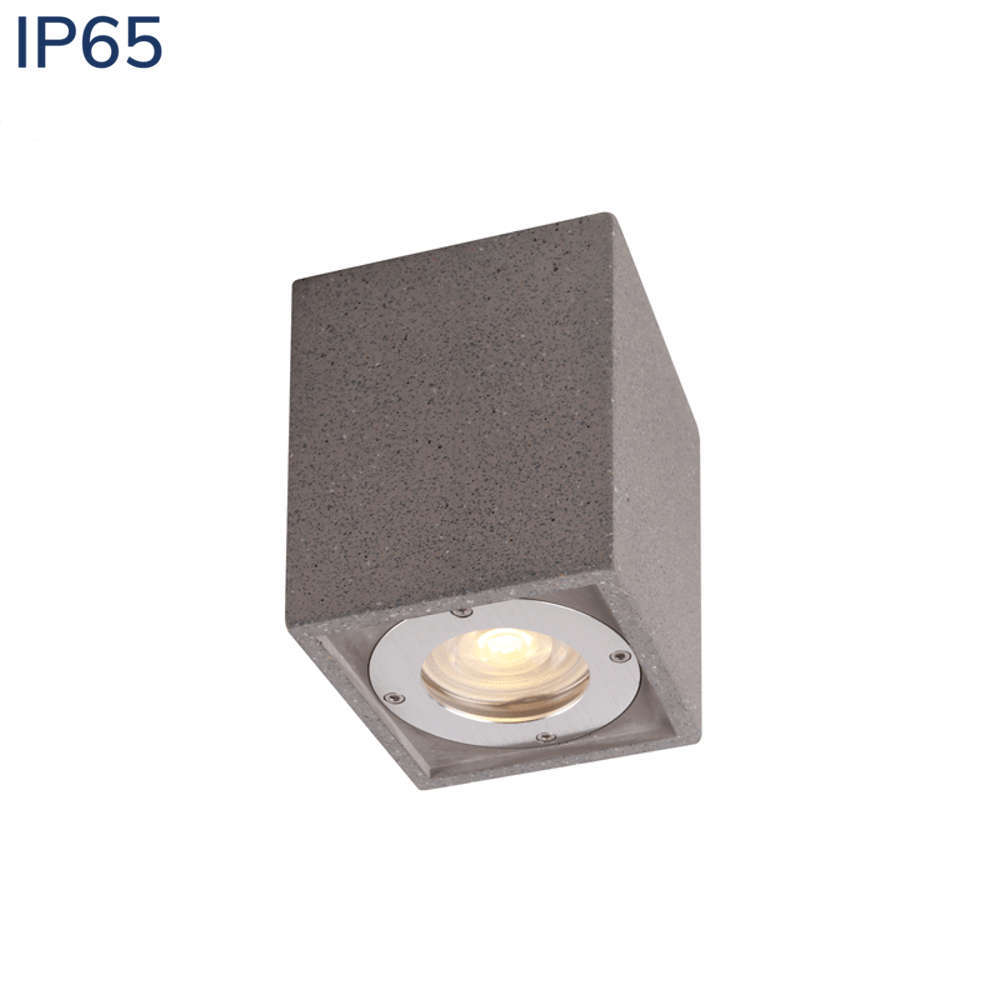Луна за външен монтаж IP65, черно тяло, стъклен дифузер с неръждаем пръстен, корпус бетон