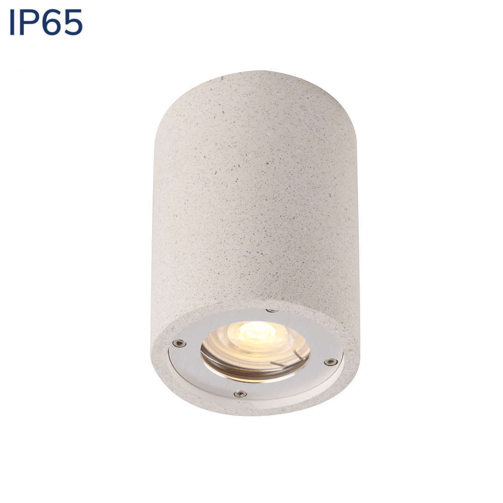Луна за външен монтаж IP65, бяло кръгло тяло, стъклен дифузер с неръждаем пръстен, корпус бетон