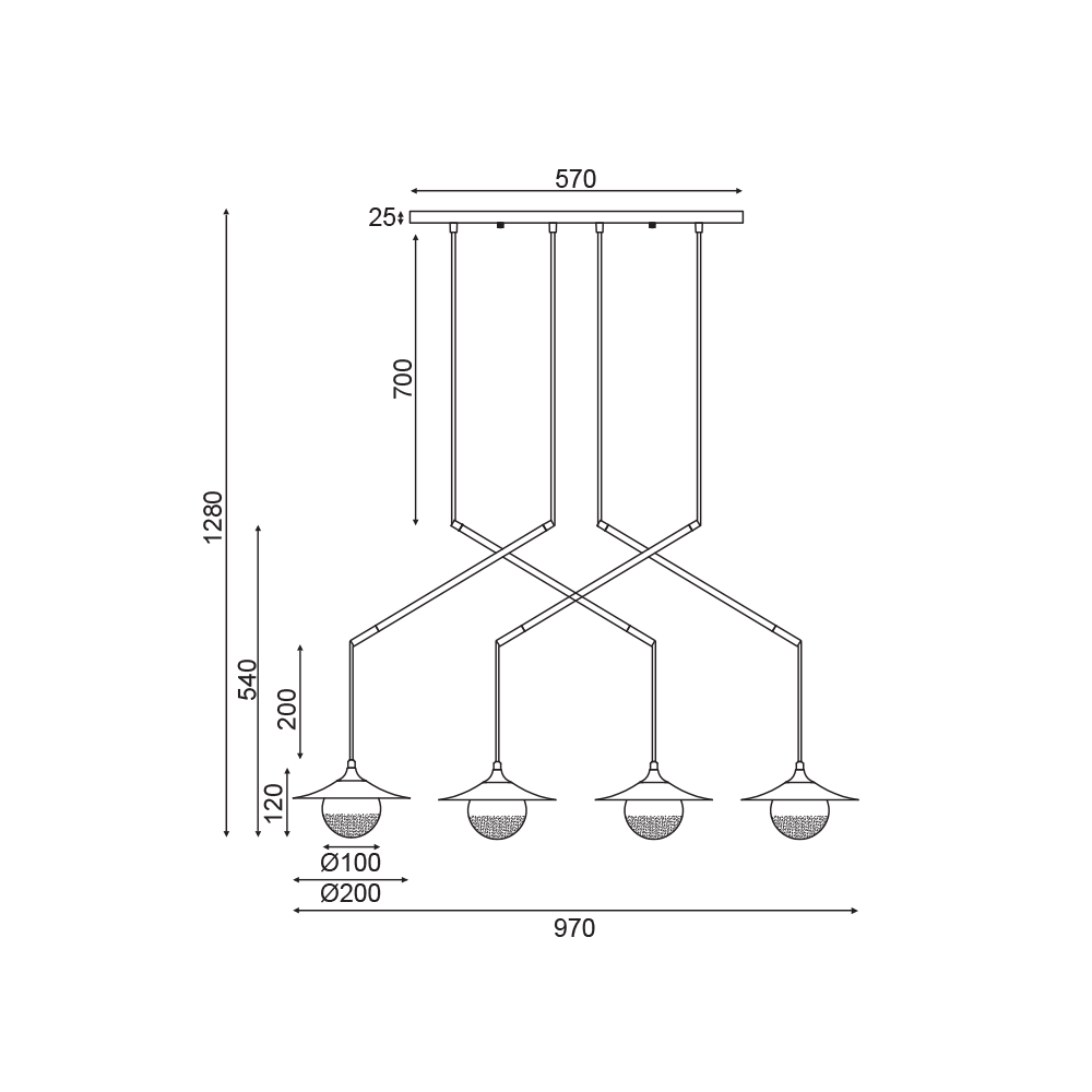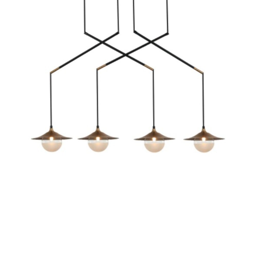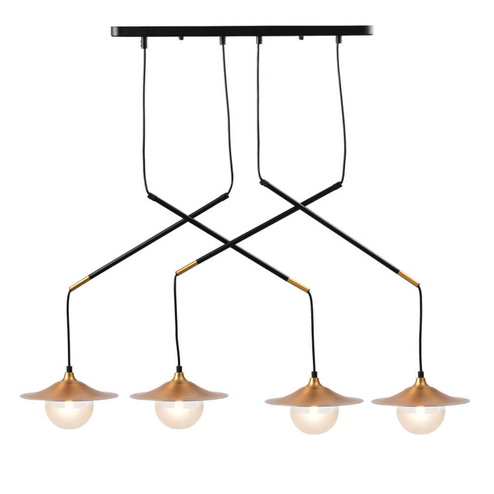Пендел ACA Lighting LAYLA HL4314P96BB - висящо осветително тяло с четири светлинни източника със специален дизайн. Корпусът е изработен от метал в черен матиран нюанс, като има четири стъклени абажура декорирани с метал в цвят месинг. Интегрираните фасунги G9 са адаптивни за LED крушки G9. Лампата има възможност за регулиране на общата височина до 128 см. Пендел ACA Lighting LAYLA HL4314P96BB e идеален избор за тези, които искат да придадат модерна естетика на декорацията и осветлението си.