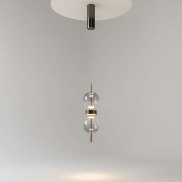 - Декоративна висяща лампа с две стъклени сфери и скрит LED източник