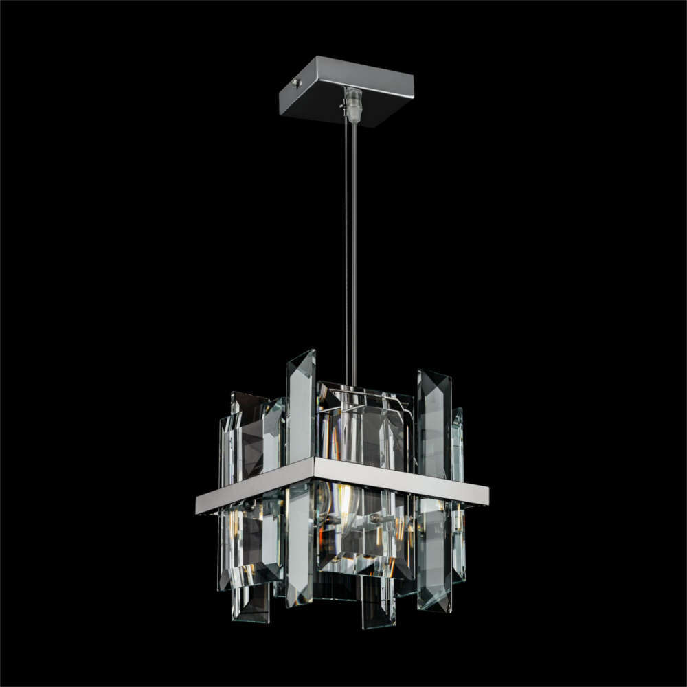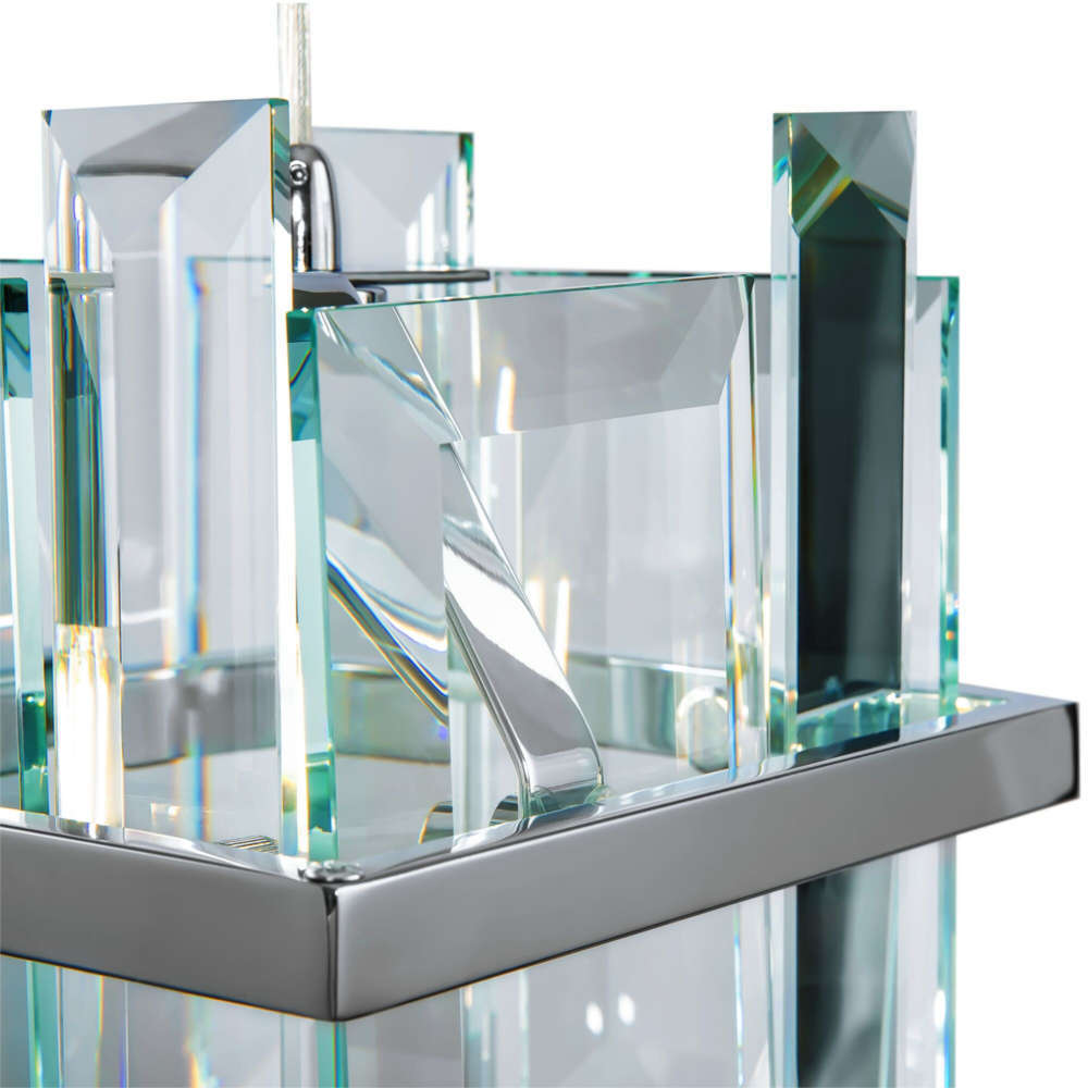 Модерен луксозен пендел с фасунга Е14, метал и кристал, цвят хром