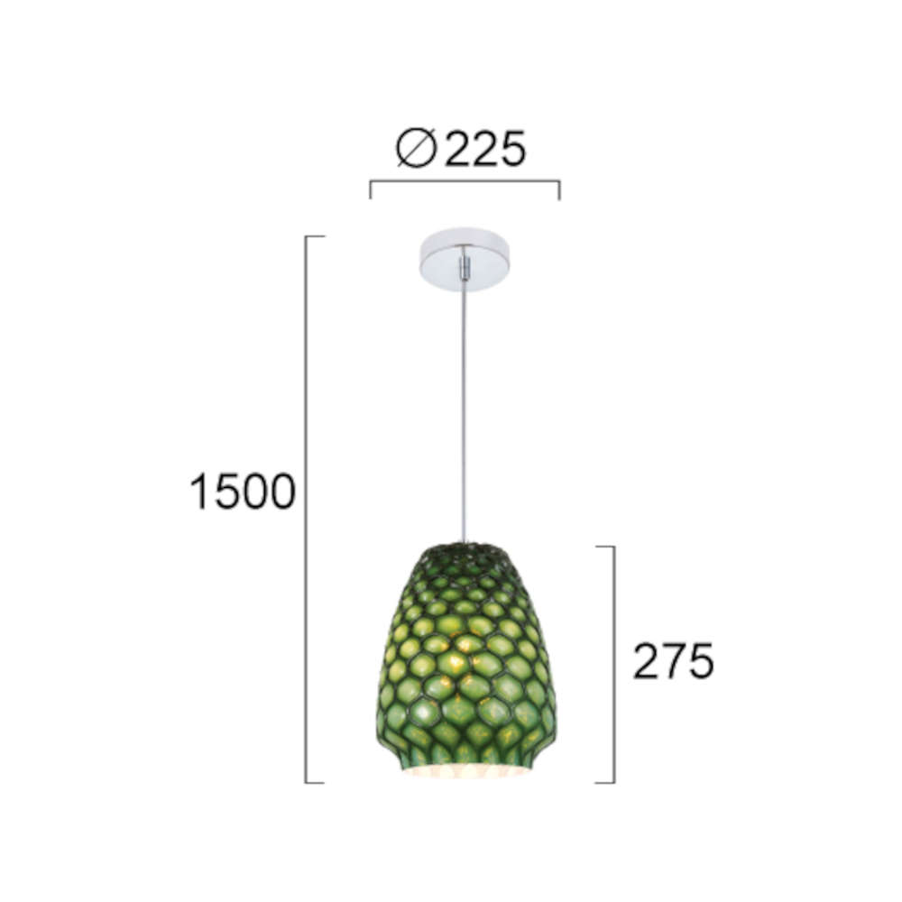 Висяща лампа VIOKEF FELICIA 4339601 впечатлява със стилен зелен стъклен абажур и елегантна розетка в цвят матиран хром. Моделът стъклен пендел е с фасунга E27, което позволява използване на различни LED крушки според желаната светлина и атмосфера. Регулируемата височина осигурява гъвкавост при монтаж и я прави подходяща за трапезарии, кухни, барплотове и светлинни композиции. Отличен избор за модерни и дизайнерски интериори с декоративен акцент.