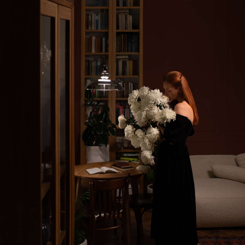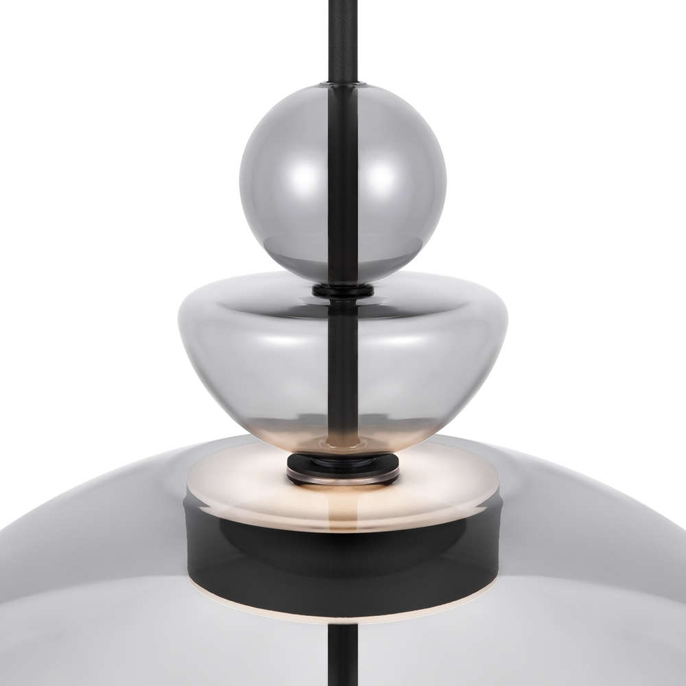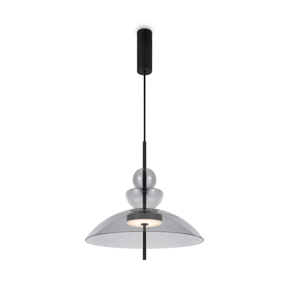 Дизайнерска висяща LED лампа Maytoni MOD185PL-L11B3K3 от серия Bangkok с голям стъклен купол и два стъклени елемента над него, оформящи ясно изразен „храмов“ силует.