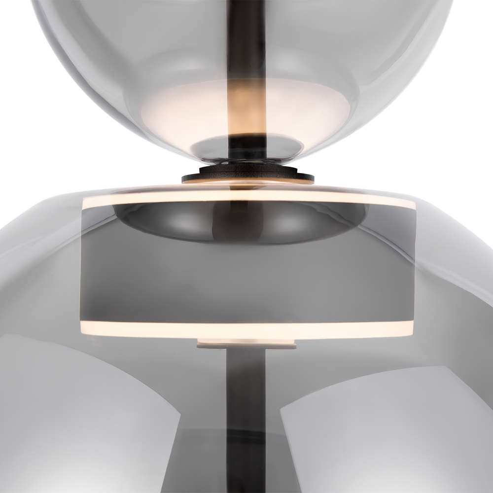 Висяща LED лампа Maytoni MOD185PL-L6B3K5 с куполовиден абажур от сиво стъкло Ø25 см и полусферичен стъклен елемент над него, със светене нагоре и надолу.