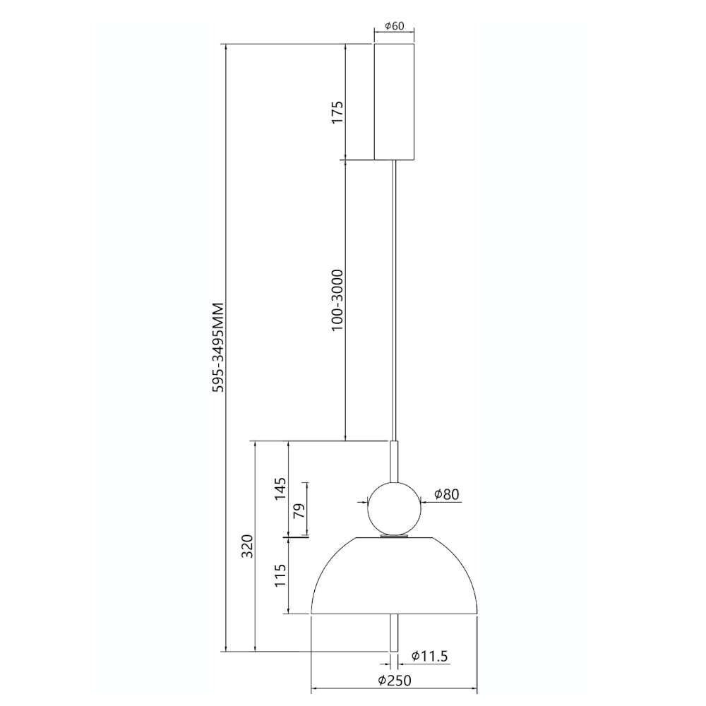 - Абажур: куполовиден, Ø250 мм, височина 115 мм