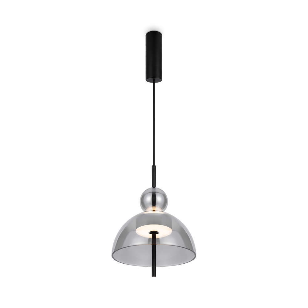 Дизайнерска висяща лампа Maytoni MOD185PL-L6B3K4 с куполовиден абажур от светлосиво стъкло с диаметър на купола Ø25 см и стъклена сфера над него, със светене нагоре и надолу.
