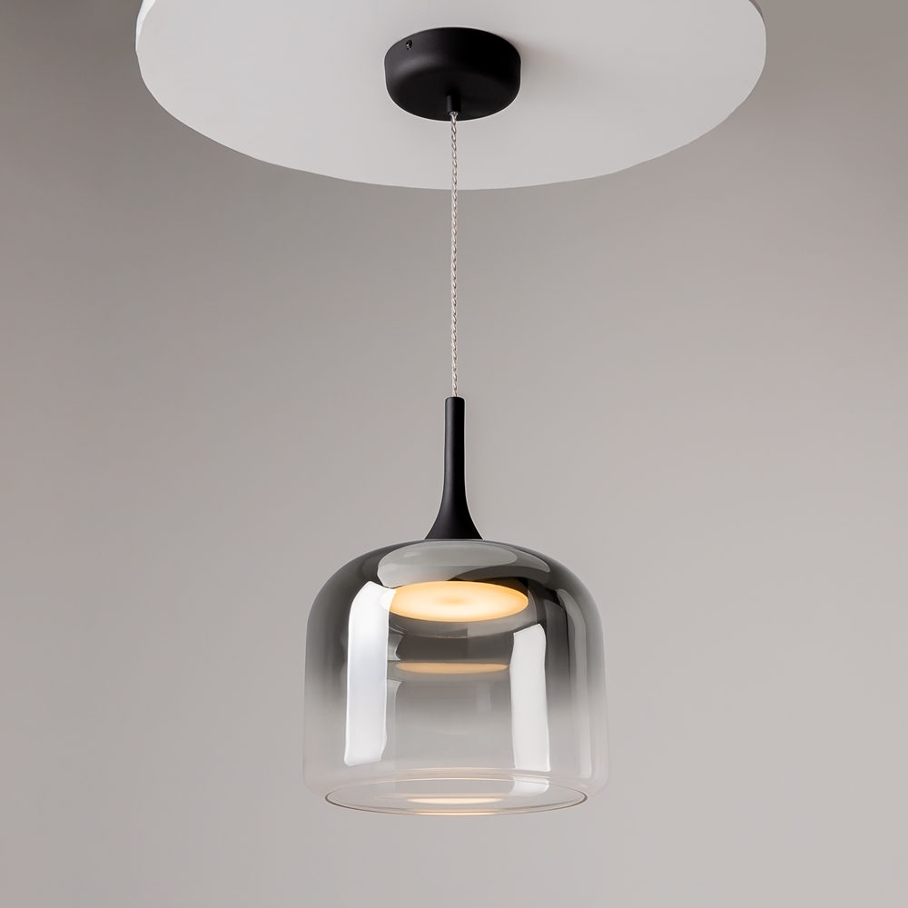 Дизайнерски LED пендел Maytoni MOD286PL-L18B3K от серията Spirito с черна метална конструкция и стъклен абажур с градиент в тъмен нюанс, с вграден 12W LED източник 3000K.