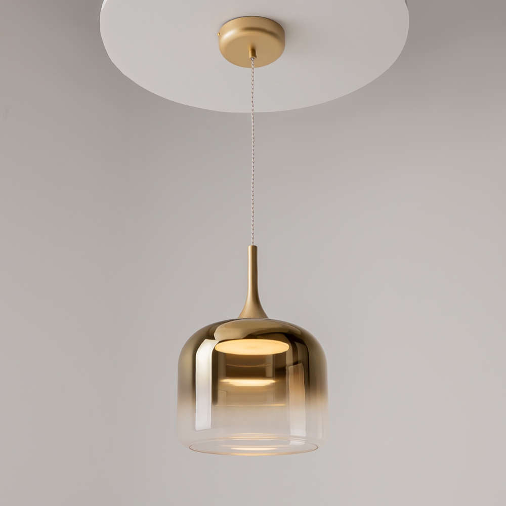 LED пендел Maytoni MOD286PL-L18G3K от серията Spirito със златиста метална конструкция и стъклен абажур с градиент в топъл златист нюанс, с вграден 12W LED източник 3000K. Елегантно решение за осветление на хол, трапезария, спалня, хотел или заведение.